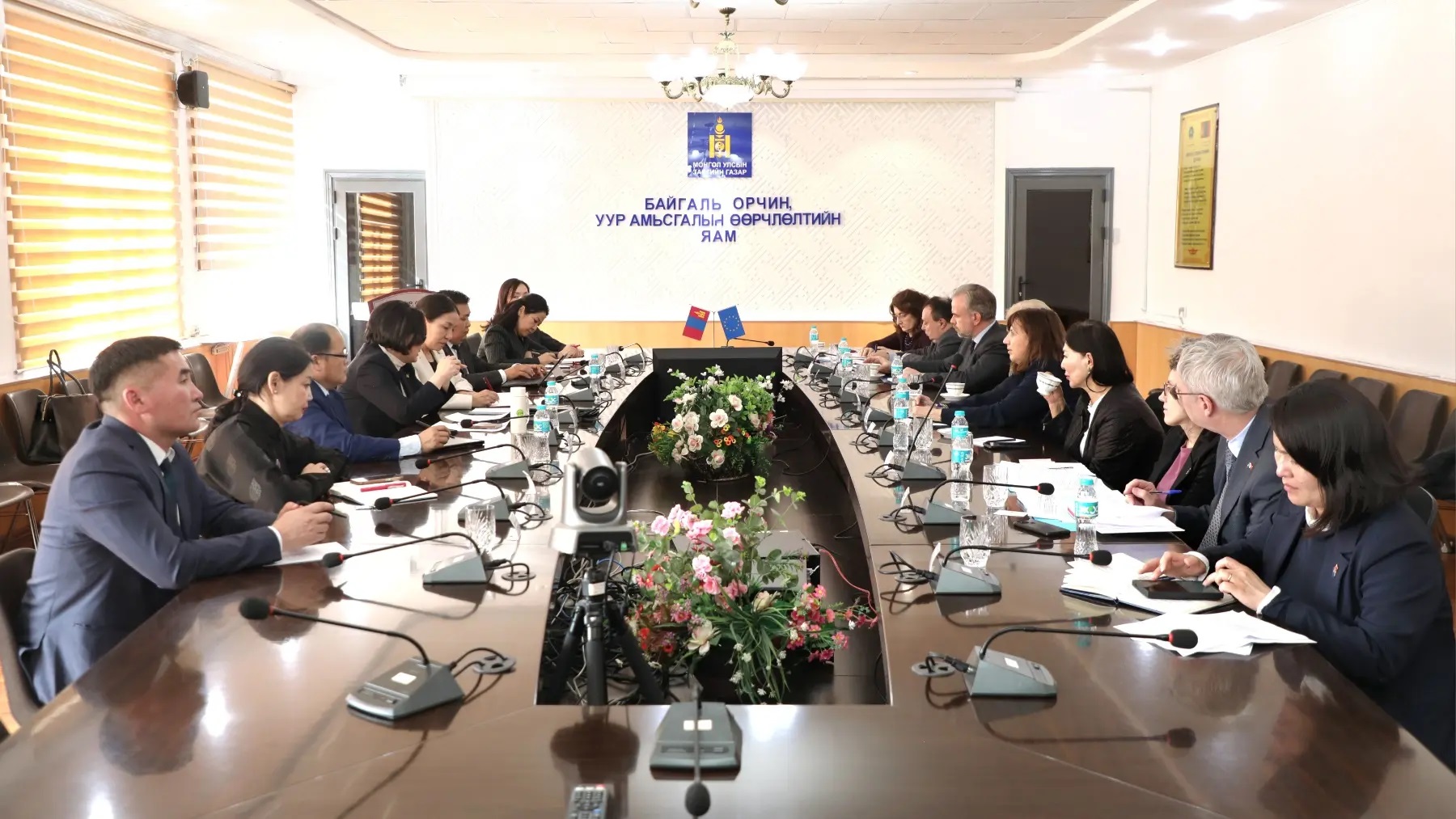 Байгаль орчин, уур амьсгалын өөрчлөлтийн сайд С.Одонтуяа Европын Холбооны Ази-Номхон Далайн бүсийн дэд захирал Паола Пампалони, Европын Холбооноос Монгол Улсад суух Онц бөгөөд Бүрэн эрхт Элчин сайд Ина Марчюлёните, холбогдох төлөөлөгчдийг хүлээн авч уулзлаа. Уулзалтад хоёр талын өндөр түвшний төлөөллүүд оролцож, байгаль орчны салбар дахь хамтын ажиллагааны өнөөгийн байдал, ирээдүйн чиг хандлагын талаар хэлэлцэв