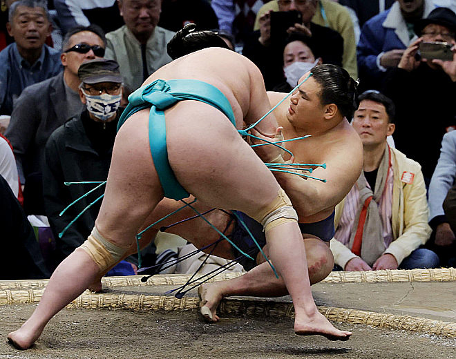Тэгвэл 25 настай шинэхэн ёкозүна Цүрүга хотод тойргийн барилдаан хийхдээ Ичиямамототой дэвжээнээ дараалан 11 удаа барилдаж, бүгдэд нь ялсан байна. Мөн үүнийхээ дараагаар цээж өгөх дасгал хийлгэж, шандсыг нь шалгажээ.
