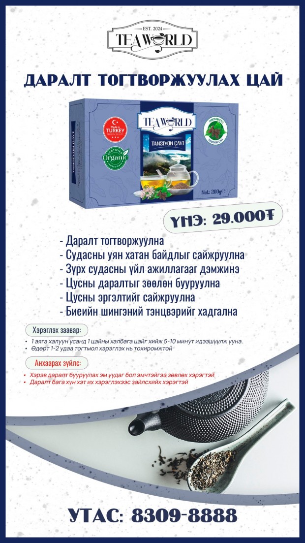 Эрүүл мэндийнхээ төлөө цайны ертөнцөөр хамтдаа аялахыг “BGL World” компани уриалж байна.