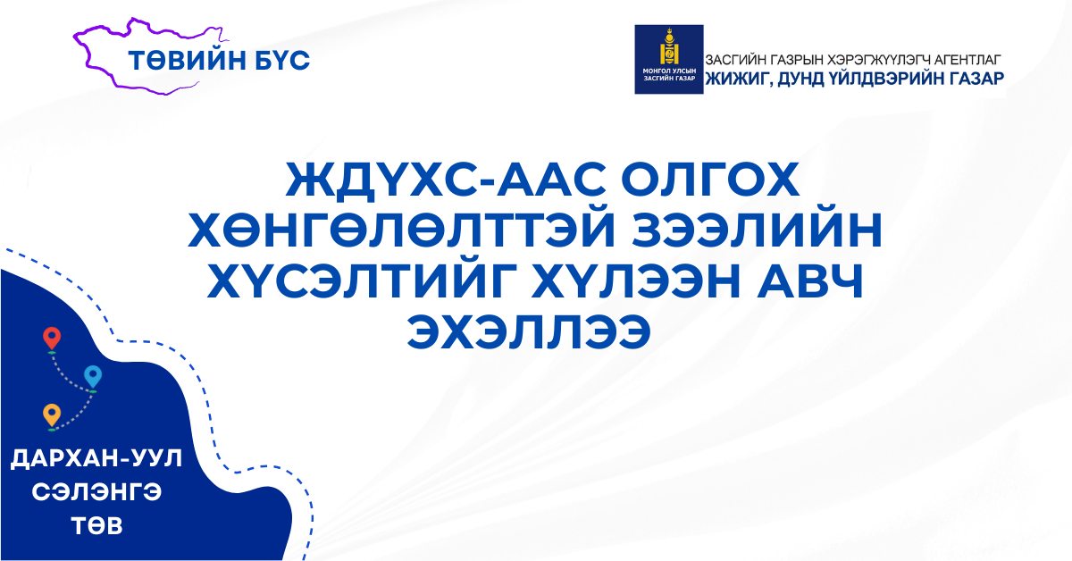 Засгийн газрын 2020 оны 113 дугаар тогтоолоор батлагдсан “Жижиг, дунд үйлдвэрийг хөгжүүлэх сангаас хөнгөлөлттэй зээл олгох, сонгон шалгаруулах, дамжуулан зээлдүүлэх, эргэн төлүүлэх, хяналт тавих журам”-ын дагуу Төвийн бүсийн аймгуудын /Дархан, Сэлэнгэ, Төв/ бичил үйлдвэр, үйлчилгээ эрхлэгчдээс зээлийн хүсэлт хүлээн авах үйл ажиллагааг 2025 оны 04 дүгээр сарын 14-ний өдрөөс дахин 30 хоног хүлээн авч эхэллээ.