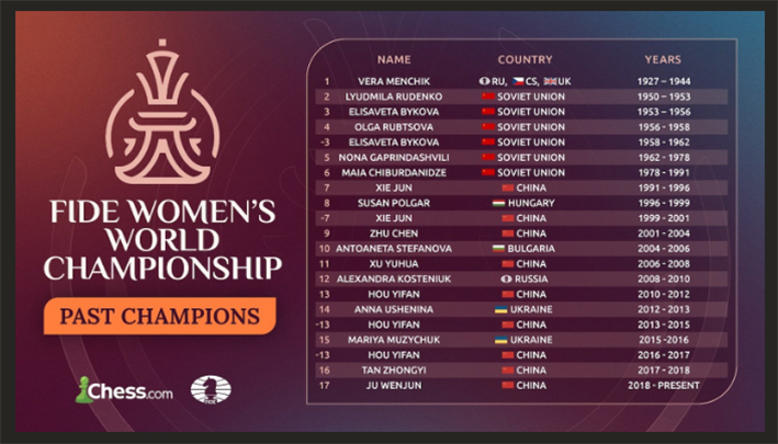 Эмэгтэйчүүдийн чансааг тэргүүлж буй Хоу Ифань шатраасаа хөндийрч буй тал түүний дараагаар бичигдэж буй Жү Вэнжүний ноёрхлыг хэн, хэзээ зогсоож чадах нь тодорхойгүй байна.