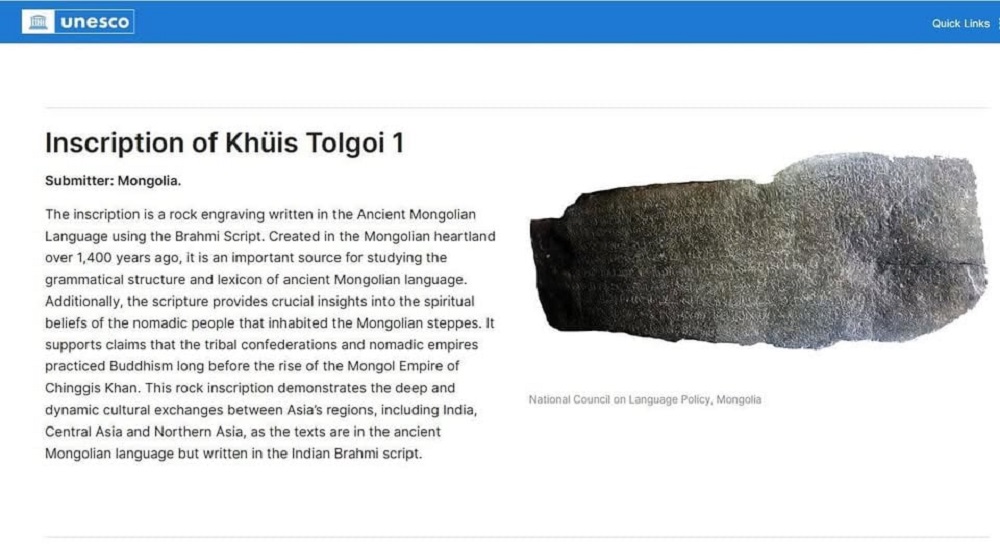 Монгол Улсын түүх, соёлын хосгүй үнэт өв болох “Хүйс толгойн бичээс” ЮНЕСКО-д баримтат өвөөр бүртгэгджээ.
