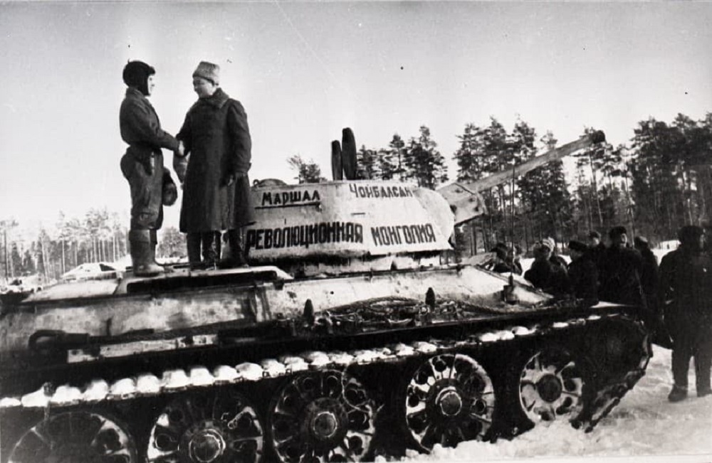 1942 оны нэгдүгээр сард хуралдсан БНМАУ-ын XV Бага хурлаас “... Улс орны өмнө зогсож байгаа улс төр, эдийн засгийн зорилтуудыг биелүүлэх бүх ажил нь улс орныг батлан хамгаалах явдлыг бэхжүүлэх ба фронтод туслах явдалд захирагдсан байвал зохих”-ыг зааж, нэгд “... Хувьсгалт Монгол Улс” гэдэг нэртэй танкийн цувааг байгуулж, Зөвлөлтийн баатарлаг улаан цэрэгт бэлэглэх, хоёрдугаарт “Хувьсгалт Монгол Улс” гэдэг танкийн цуваа байгуулах хөрөнгийг хуралдуулах ажлыг зохиохыг Засгийн газарт даалгасан тогтоол гаргажээ. Энэ дагуу Засгийн газраас 2.5 сая төгрөг, 300 кг алт, 100 мянган америк долларыг 1942 оны хоёрдугаар сард ЗХУ-ын Гадаад худалдааны банкинд урьдчилан шилжүүлжээ. Монголын ард түмний тусламжийн хөрөнгөөр ЗХУ-д үйлдвэрлэсэн “Т-34” загварын 32 танк, “Т-70” загварын 53 танк бүхий “Хувьсгалт Монгол” танкийн бригад байгуулсан байна. “Хувьсгалт Монгол” танкийн бригад Берлин хүртэл давшиж гавьяа байгуулсан байдаг.