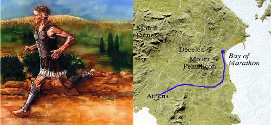 Яагаад марафон гэж нэрлэсэн талаар бяцхан түүх өгүүлье. МЭӨ 490 оны есдүгээр сарын 12-нд Грекийн нийслэл Афинаас ойролцоогоор 40 километрийн зайд орших Марафон хотод тулаан болжээ. Тулаанд ялсан тухай мэдээг дуулгахаар Фидиппид хэмээх байлдагч Марафоноос Афин хүртэл зогсолгүй гүйсээр очиж, “Баярт мэдээ! Афинчууд аа, бид ялсан!” гэж хашхираад тэр дороо үхэтхийн унасан гэдэг.