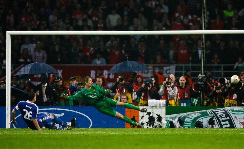 Шийдвэрлэх тав дахь цохилтыг Жон Терри гүйцэтгэсэн. Хэрвээ тэр цохилтоо “чулуу болгосон” бол “Челси” аварга болох байлаа. Гэвч цохихдоо хальтирснаар сайхан боломжийг салхинд хийсгэж, улмаар долоо дахь цохилтыг Николя Анелька алдсанаар “Манчестер Юнайтед” аваргын цом өргөсөн түүхтэй.