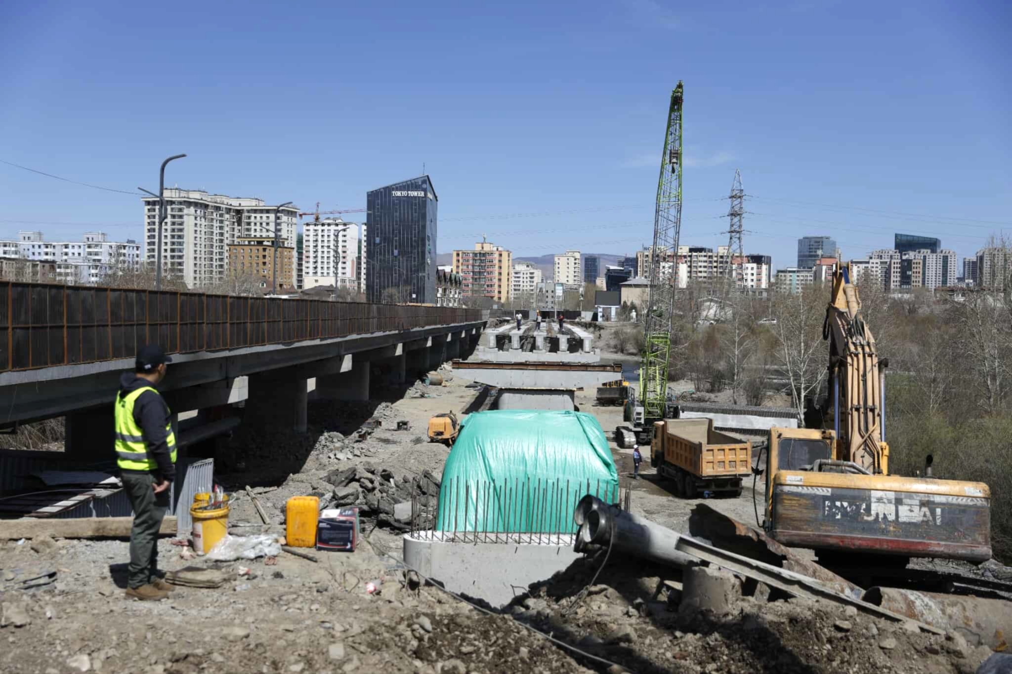 Зайсангийн зүүн гүүрийг өнгөрсөн гуравдугаар сард буулгаж дуусаж, 225 метр урт төмөрбетон гүүр шинээр барьж эхэлсэн. Тэгвэл өнөөдөр гүүр барих ажлын явц 82 хувьтай байна. Суурийн арматур, дам нуруу байрлуулах, газрын түвшнээс доош 17 метр гүнд шон суурилуулсан буюу доод бүтээцийн ажил 98 хувьтай. Дээд бүтээцийн ажилд нийт 10 алгасал угсарна. Үүнээс таван байршилд алгасал угсарсан, холбоос төмөрбетон арматурыг мөн угсарч байна.