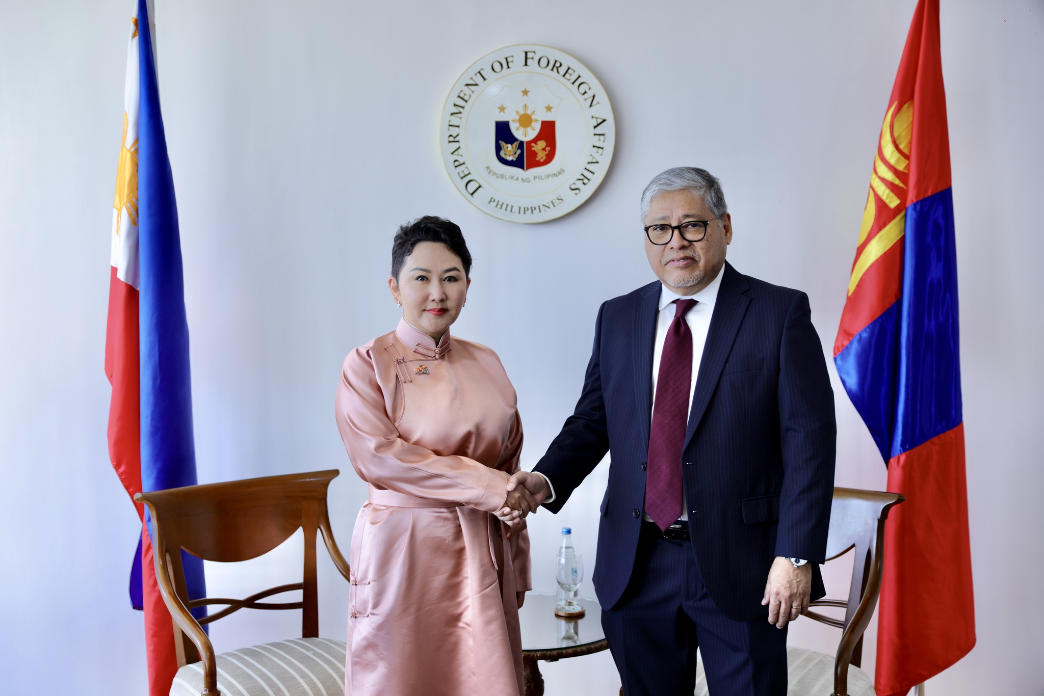 Монгол Улсын Гадаад харилцааны сайд Б.Батцэцэг 2025 оны 5 дугаар сарын 19-ний өдөр Бүгд Найрамдах Филиппин Улсын Гадаад хэргийн сайд Энрикэ А. Маналотай уулзаж албан ёсны хэлэлцээ хийв.