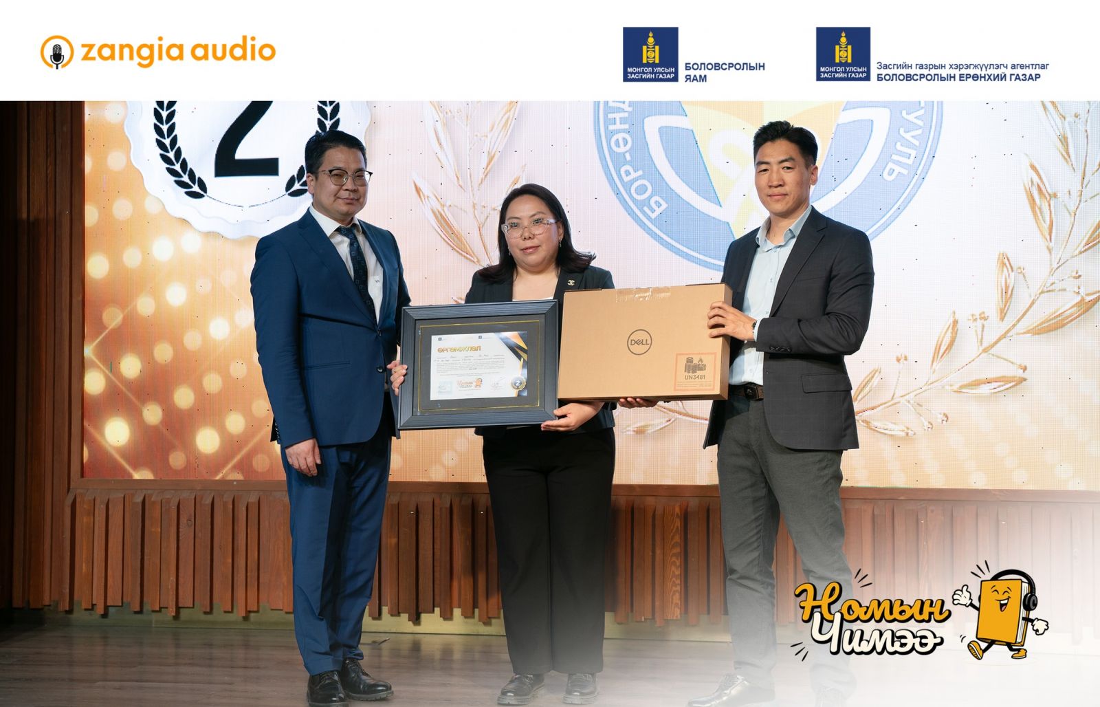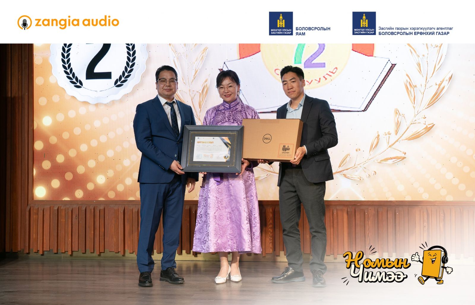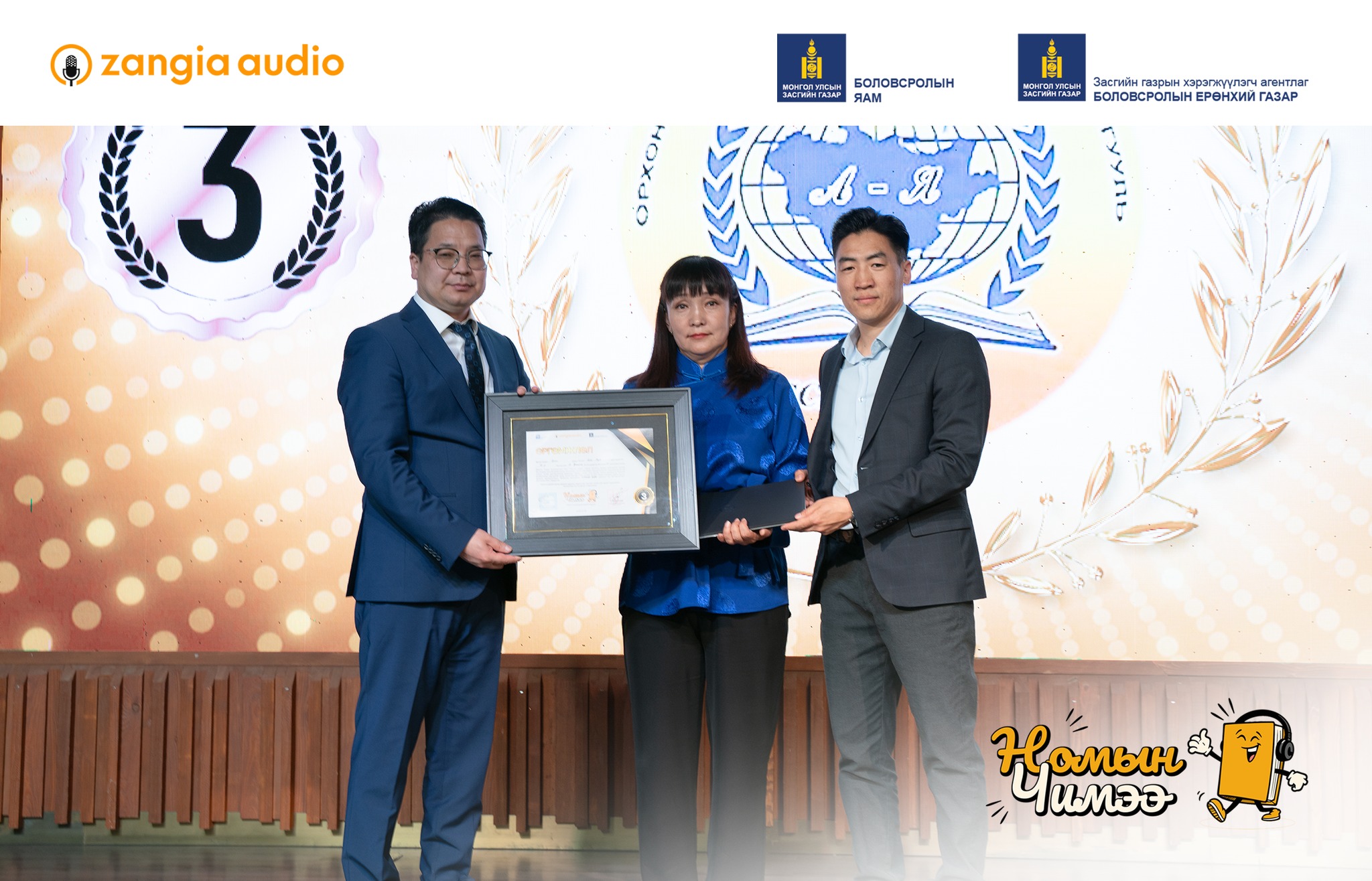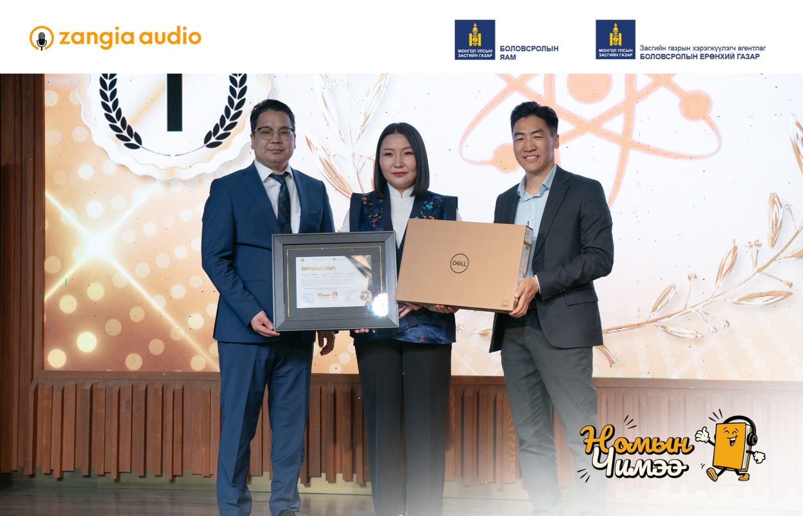 тэргүүлсэн байна. “Номын чимээ” улсын уралдааны хүрээнд сурагчид Ерөнхий боловсролын сургуулийн бага, дунд, ахлах ангийн хичээлийн агуулгад багтсан, заавал судлах зохиолуудыг сонсохоос гадна Монголын болон дэлхийн сонгодог уран зохиол, бүтээлүүдийг сонсож мэдлэг оюундаа үнэлж баршгүй том хөрөнгө оруулалтыг хийлээ. Хүүхэд залуусын дунд утга зохиолын яруу сайхан хэллэг үгүйлэгдэж, цахим орчинд хүүхдэд хориотой болон хортой агуулга бүхий нийтлэл контентоос хүүхэд залуусыг хамгаалах асуудал тулгамдаж буй энэ үед ЗАНГИА АУДИО “Номын чимээ” уралдааны хүрээнд блокчейн технологиор дамжуулан хүүхэд бүрд тэгш боломж олгож улсын хэмжээнд 30,000 гаруй сурагчдыг номын гайхамшигт ертөнцөөр аялууллаа.