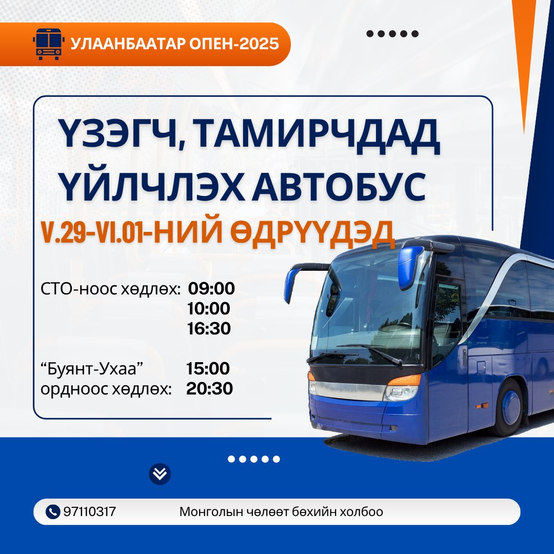 Тэмцээнийг ордон дүүрэн үзэгчтэй, уур амьсгал сайхантай байлгахын тулд автобусаар үнэгүй үйлчлэхээр болсон байна. Тэмцээн болох тавдугаар сарын 29-нөөс зургаадугаар сарын 1-ны өдрүүдэд Спортын төв ордны үүднээс 09:00, 10:00, 16:30 цагуудад автобус үнэгүйгээр “Буянт Ухаа” хүргэж өгөх бол, 15:00, 20:30 цагуудад эргээд Спортын төв ордон хүртэл мөн үнэгүй үйлчлэхээр болжээ.