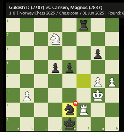 Гүкэшийн цагаанаар наадсан зургаадахь өрөгт Магнус Карлсен давуу байрлалтайгаар хожих бүрэн боломжтой байсан төгсгөл дээр том алдаа гаргаснаар Гүкэшт хожил бэлэглэсэн юм. Ингээд хожигдлоо хүлээн зөвшөөрөхийнхөө өмнө Магнус Карлсен ширээн шаан бослоо. Харин анх удаагаа сонгодог шатарт Магнусыг хожсон Гүкэш өөртөө итгэж ядан толгойгоо барин хэсэг зогсов.