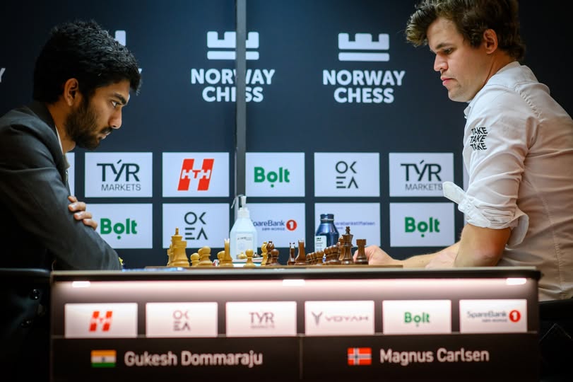 Шатрын Дэлхийн аваргын титмээсээ өөрөө татгалзсан Магнус Карлсен 6 дугаар өрөгт Дэлхийн шатрын шинэ аварга, хоёрхон хоногийн өмнө 19 нас хүрсэн Энэтхэгийн их мастер Гүкэш Доммаражүтай туллаа.
