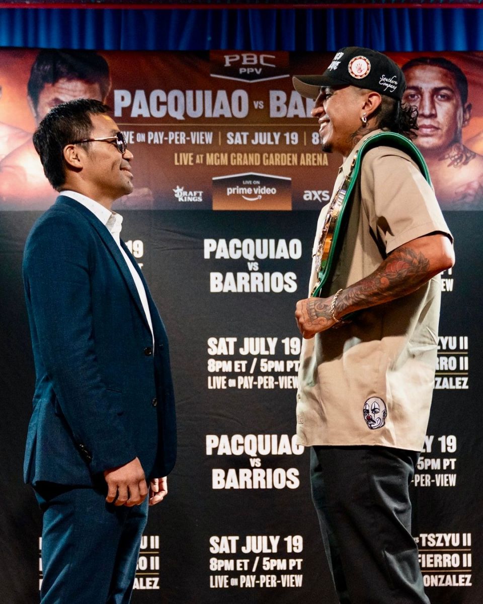 Мэнни Пакьяо мэргэжлийн боксын рингэнд 62 ялалт байгуулж, 8 ялагдаж, 2 тэнцсэн дүнтэй. Ялалтын 39 нь нокаут. Харин Дэлхийн аварга Марио Барриос 29 ялалт, 2 ялагдал, нэг тэнцээтэй, 18 удаа өрсөлдөгчөө нокаутаар ялсан, одоо 30 настай.