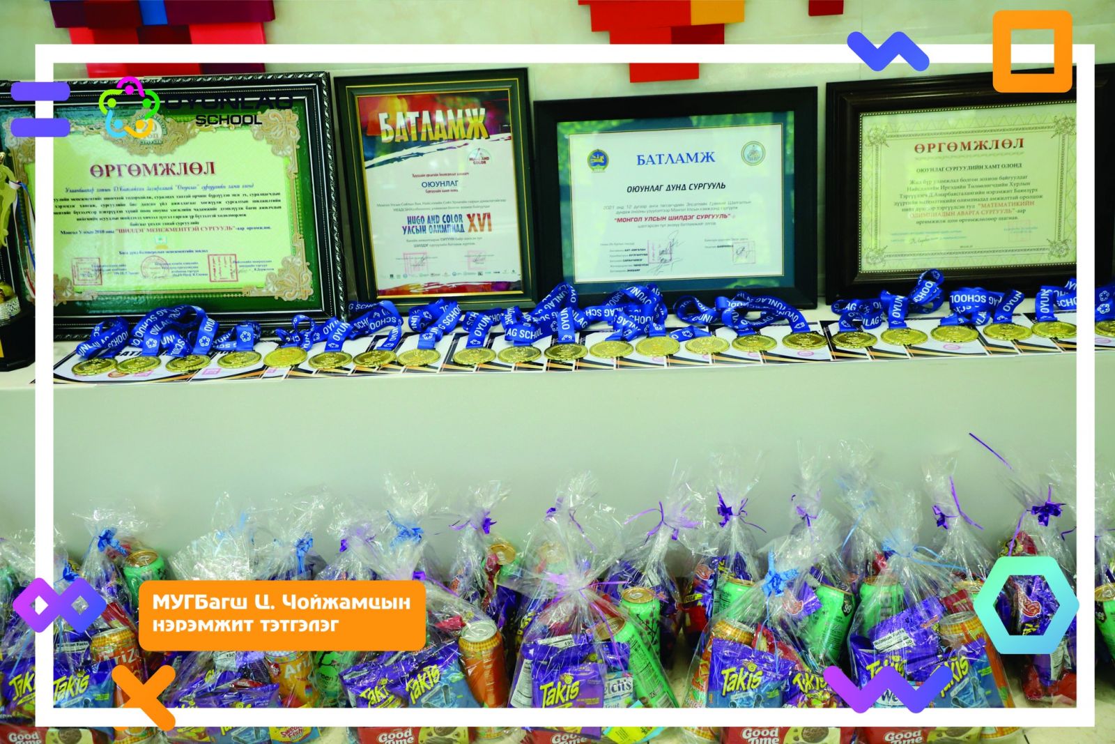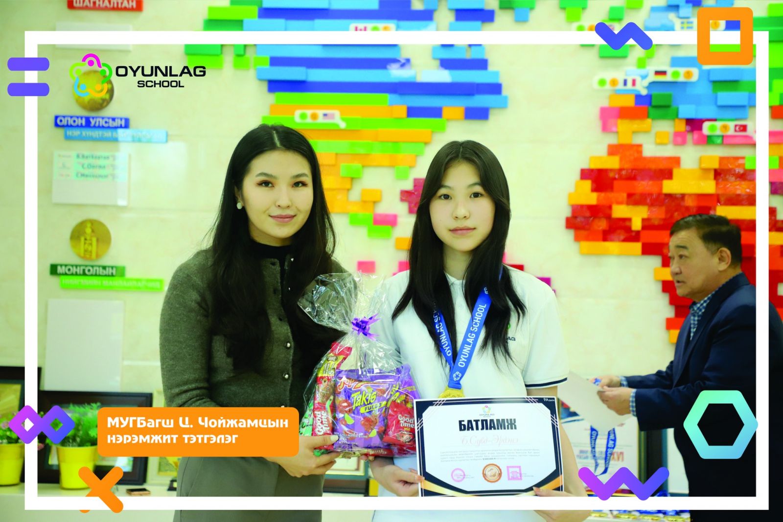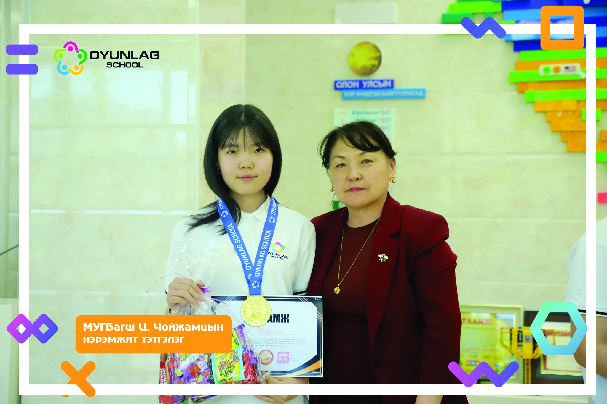 2024–2025 оны хичээлийн жилд ангийн болон сургуулийн хэмжээнд үе тэнгийнхнээ манлайлан суралцсан шилдэг 24 сурагчид Монгол Улсын Гавьяат багш Цэнддоогийн Чойжамцын нэрэмжит тэтгэлэг, алтан медаль, сургалтын төлбөрийн тэтгэлгийн батламж, гарын бэлэг гардууллаа.
