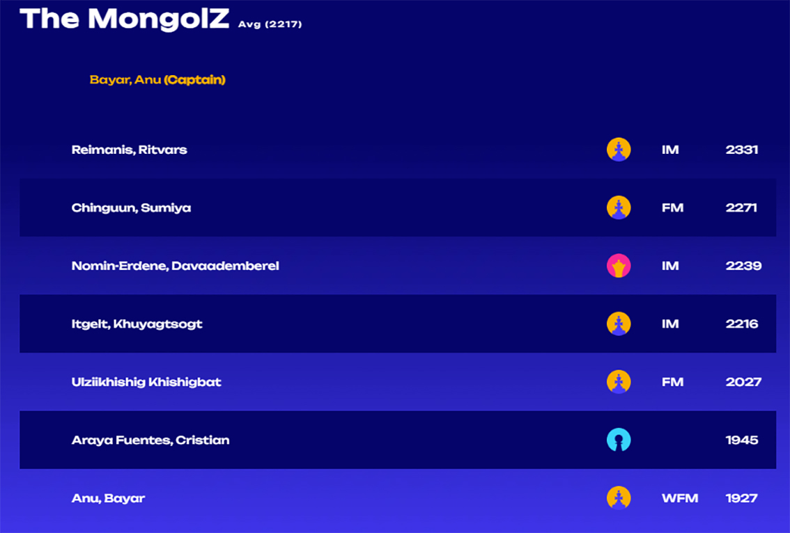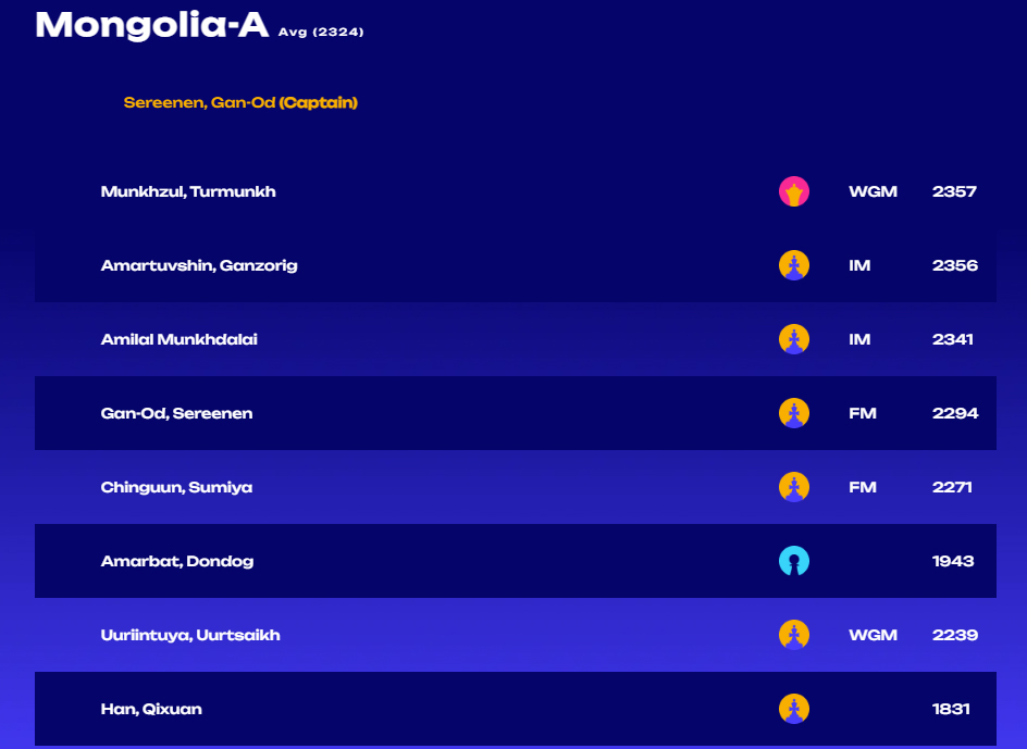 Mongolia-B багийн өгсөн мэдүүлэгт Монголын шатрын холбооны ерөнхийлөгч Г.Занданшатарын нэрийг бүртгүүлсэн нь тус тэмцээний албан ёны цахим хуудаст тэмдэглэсэн харагдана. Түүний чансааны оноог 1400 гэж тэмдэглэжээ. Гэхдээ Г.Занданшатар нь ойрын өдрүүдэд Монгол Улсын Ерөнхий сайдад МАН-ын Бага хурлаасаа нэр дэвшсэн тул тус тэмцээнд оролцох нэн эргэлзээтэй нь ойлгомжтой.