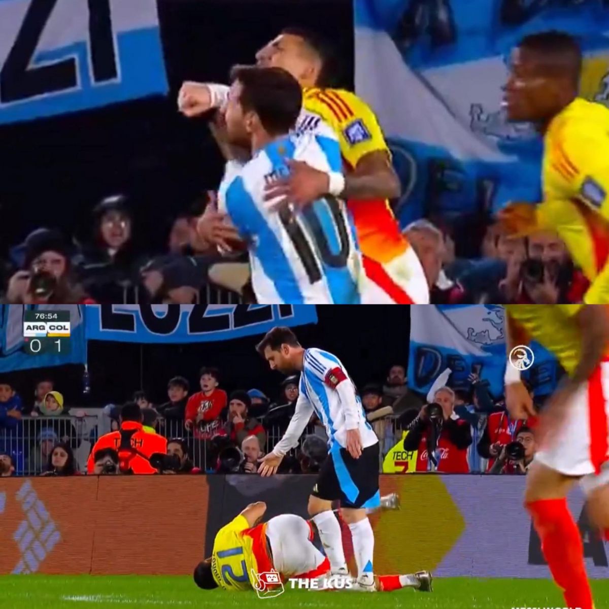 Харин Аргентины шигшээ багаас ахлагч Лионель Месси өрсөлдөгч багийнхаа ахлагч Хамес Родригестой ам мурийж харагдсан.