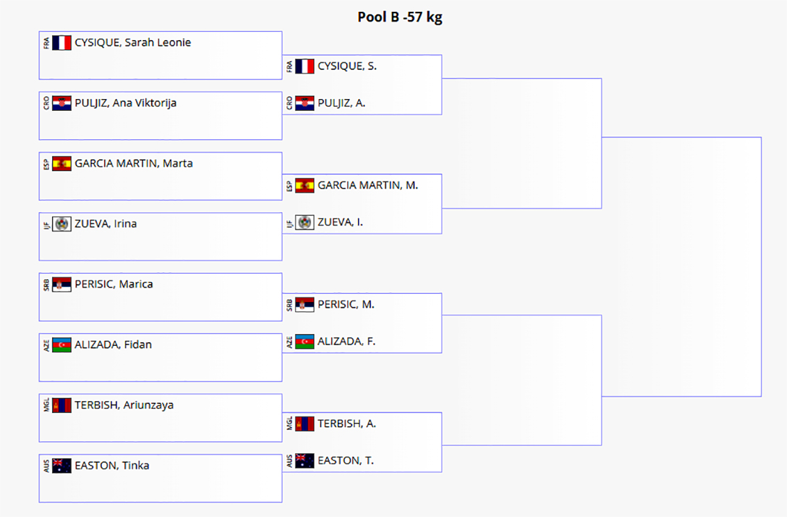 Өнөөдөр тэмцээний гурав дахь өдөр эмэгтэйчүүдийн 57 кг болон эрэгтэйчүүдийн 73 кг-ын жингийн барилдаан болно.