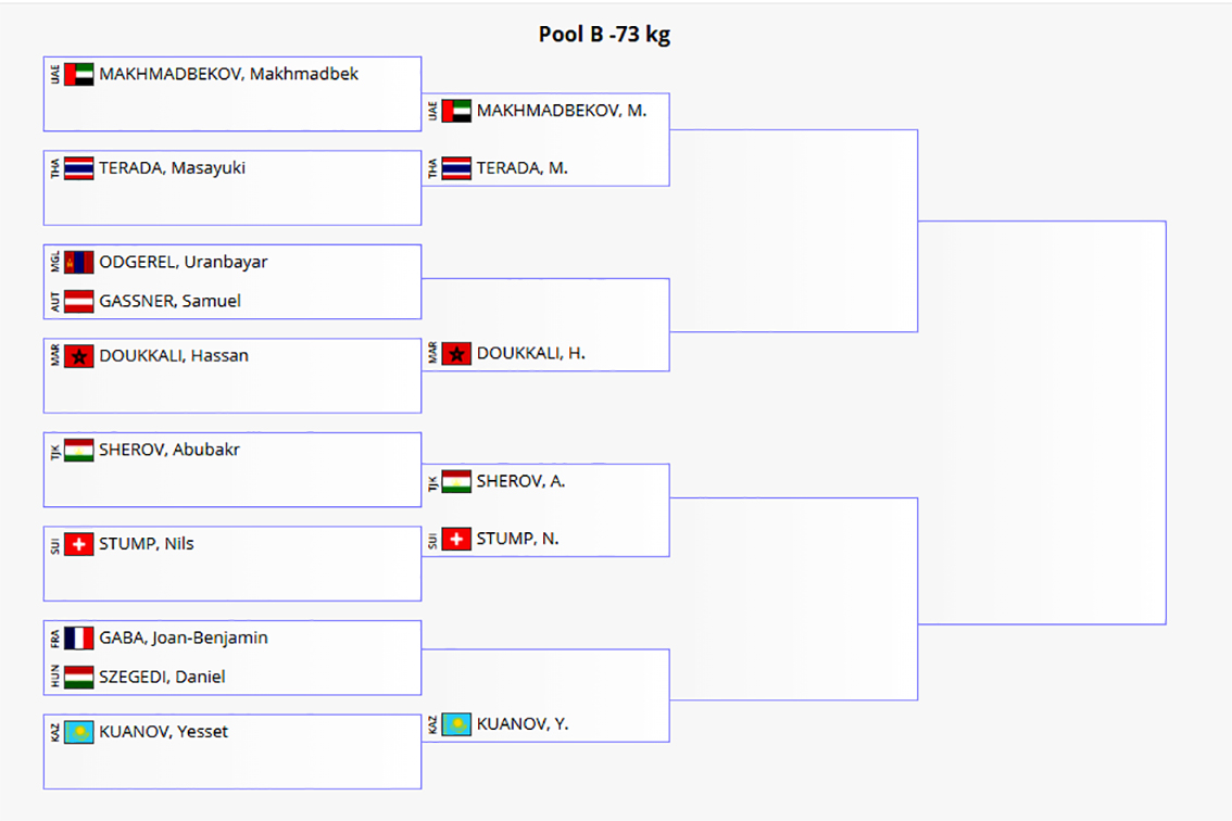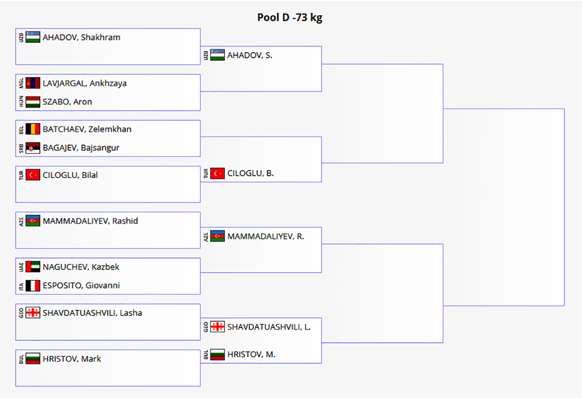 Эрэгтэйчүүдийн 73 кг-ын жинд О.Уранбаяр анх удагаа ДАШТ-ий татамид гарах гэж байна. 2023 оны Парисын “Их дуулга”-аас хүрэл медальтай ирж байсан түүний эхний өрсөлдөгч нь Австрийн Самуэль Гласснер. Гласснер гурав дахь ДАШТ-дээ оролцоно. Парисын олимпод барилдсан. Энэ жил Тбилисийн “Их дуулга”-аас хүрэл медаль хүртсэн бөх.
