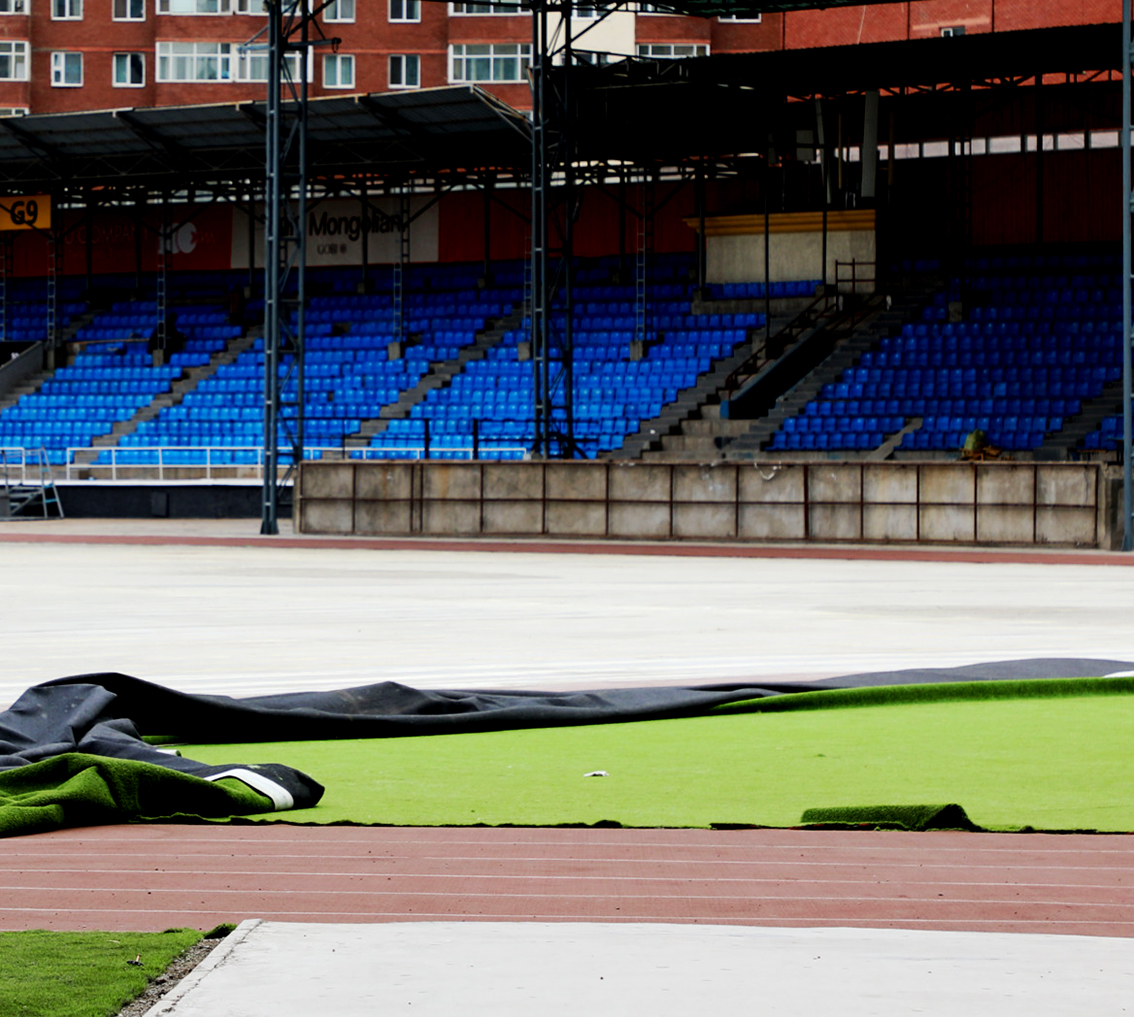 Төв цэнгэлдэхийн талбайд бетон цутгачихсан. Түүнийг хуулахгүй бол дээр нь хиймэл зүлэг дэвсэж, наахаас өөр арга одоогоор үгүй.