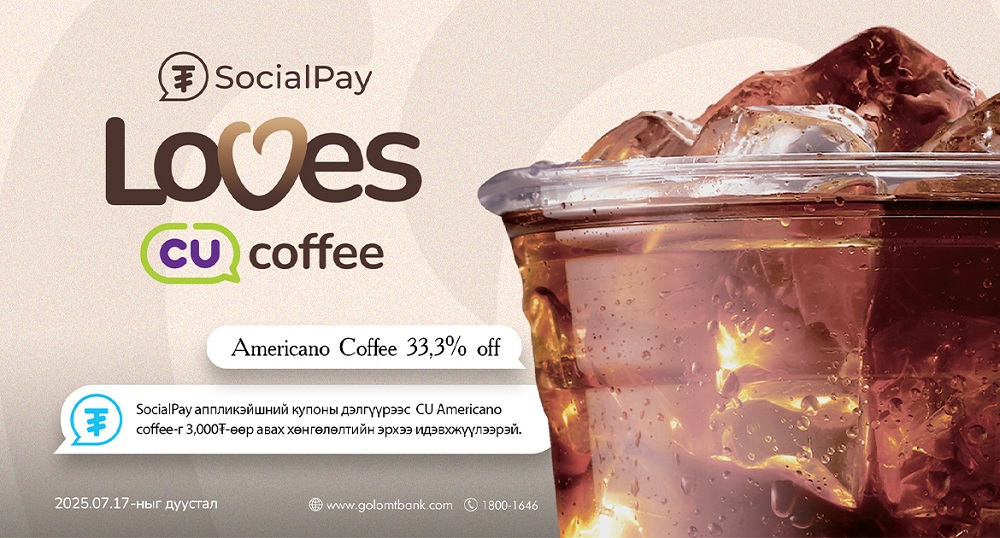 Хөнгөлөлт, урамшууллаар хэрэглэгчдэдээ үргэлж бэлэг барьдаг SocailPay аппликэйшн ээлжит урамшууллаа СU сүлжээ дэлгүүртэй хамтран хэрэгжүүлж байна. “SocialPay loves coffee” аяны хүрээнд SocialPay болон SocialPay Junior-ийн хэрэглэгчид 2025.06.18-2025.07.17-ны хооронд CU сүлжээ дэлгүүрийн бүх салбараас АМЕРИКАНО-г ердөө 3,000₮-өөр худалдан авах боломжтой.