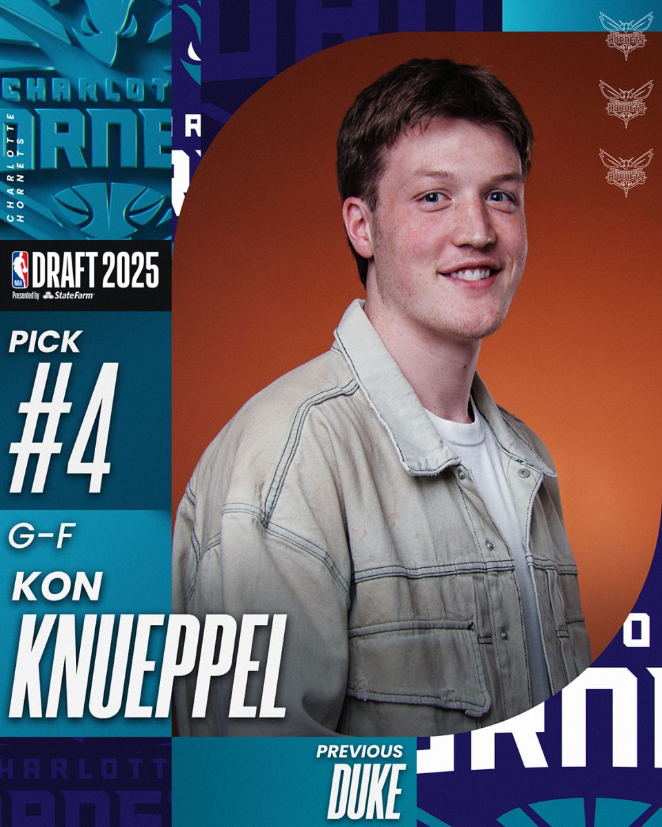 “Шарлотта” довтлогч Кон Кнүппелийг дөрвөөр сонгож авалаа. Гурвын шидэлтийн онч нь 40.6 хувтай энэ залуу торгуулийн шидэлтийг 91.4 хувьтай гүйцэтгэдэг үзүүлэлттэй. Мөн 10 гаруй тоглолтод 4 болон түүнээс олон дамжуулалт өгсөн нь холбон тоглогчийн чадвартайг нь харуулжээ. ACC-гийн MVP. Драфтыг тэргүүлсэн Күпэр Флэггийн адил “Дьюк”-ийн тоглогч юм.