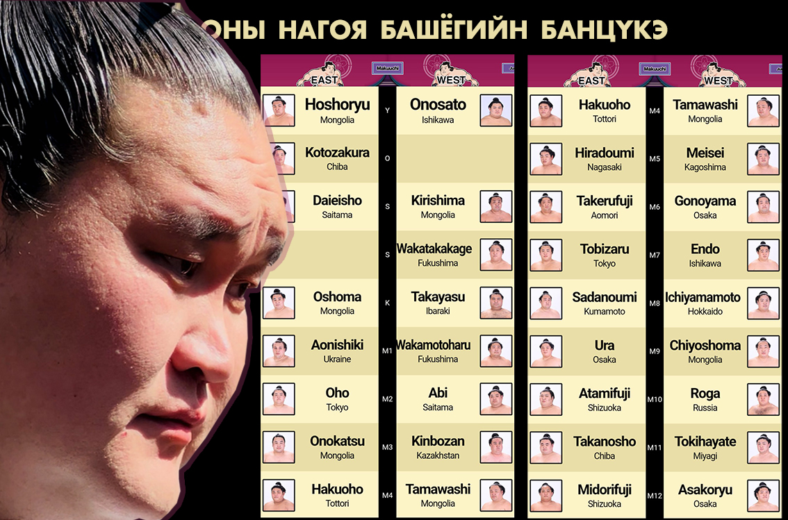 Мэргэжлийн сүмогийн Нагоя башёгийн банцүкэг албан ёсоор зарлалаа. Энэ удаагийн башёд хоёр ёкозүна зүүн болон барууны магнайд босно.