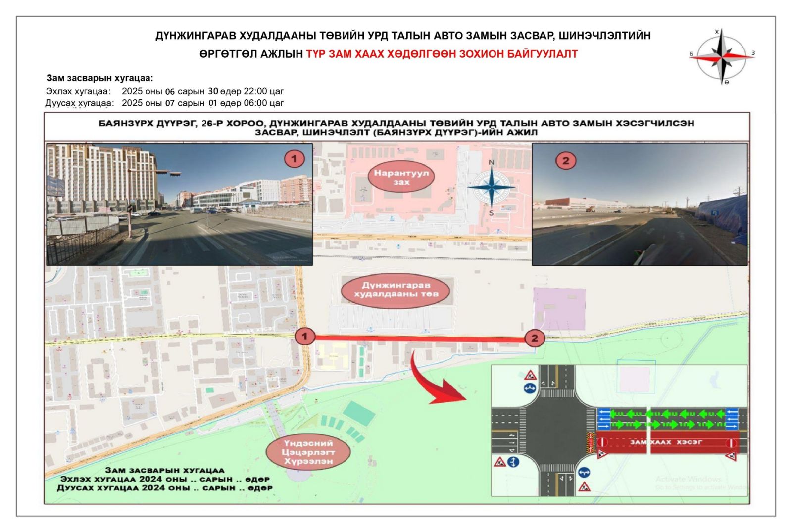 Дүнжингарав худалдааны төвийн уулзвараас 133 дугаар сургууль хүртэлх авто замын урд эгнээг хааж, шинэчилнэ.