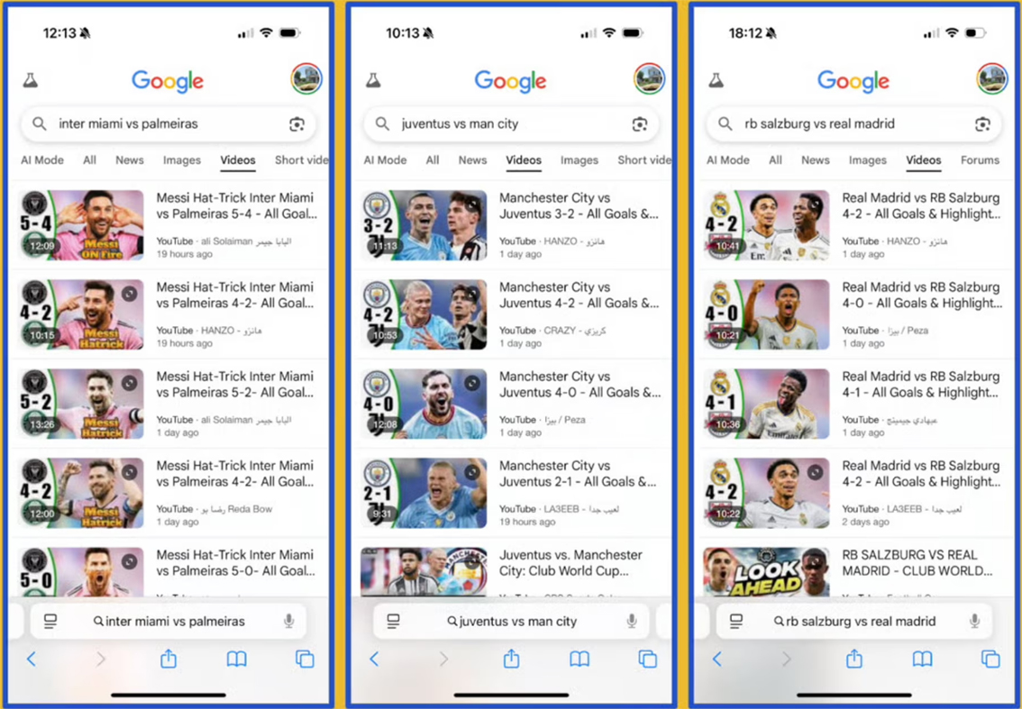 Үүнээс гадна “Манчестер Сити”-“Ювентус”-ын тоглолтын хуурамч бичлэг буюу өмнөх тоглолтуудын гоолыг эвлүүлж хийсэн хэсгүүд олноор ютүбд оржээ. “Ювентус”-ын хаалганд Мартин Дубравка зогсох аж. “Ньюкасл”-ын хаалгачийг Турины клубд хээв нэг тоглуулсан иймэрхүү хуурамч бичлэгүүд тоглолт эхлэхээс хэдэн цагийн өмнө орж, олон мянган хүн хууртан үзсэн байна.