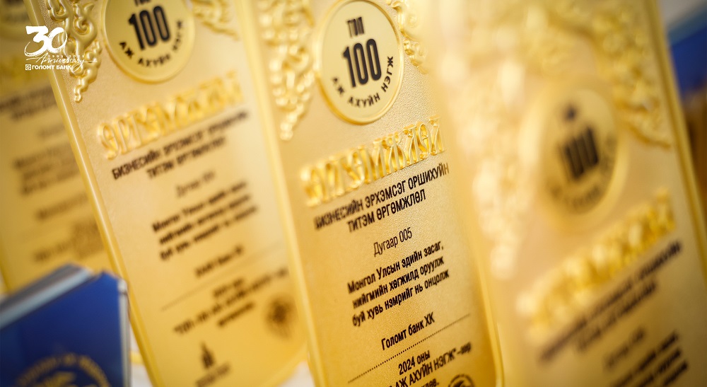 Монгол Улсын Засгийн газар, МҮХАҮТ-аас улсынхаа нийгэм, эдийн засгийн хөгжилд бодитой хувь нэмэр оруулж буй ТОП-100 аж ахуйн нэгжийг 24 дэх жилдээ тодруулж, Голомт банк 22 дахь жилдээ өргөмжлөгдөн 5 дугаарт эрэмбэлэгдлээ. ТОП-100 аж ахуйн нэгжийн шалгаруулалтаар Голомт банк 2024 онд борлуулалтын орлогоор 5-рт, татвар төлөлтөөр 6-рт, даатгуулагчийн тоогоор 4-рт, хөрөнгийн хэмжээгээр 5-рт, мөн нийт ашгийн хэмжээгээр 4-р байрт эрэмбэлэгдсэн байна.