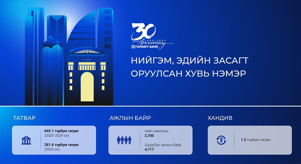 Голомт банк үүсгэн байгуулагдсан цагаасаа эхлэн Монгол Улсын эдийн засгийн хөгжлийн салшгүй нэг хэсэг нь байж, улсын хэмжээнд хөгжил дэвшил авчрах бизнес, томоохон төсөл хөтөлбөрүүдийг дэмжин санхүүжүүлсээр ирсэн. Сүүлийн таван жилийн байдлаар Голомт банк 845.1 тэрбум төгрөгийн татварыг улсын төсөвт төвлөрүүлснээс 2024 онд 281.6 тэрбум төгрөгийг татварт төлсөн. Банкны нийт хөрөнгийн хэмжээ 15.6 их наяд төгрөг болж, зах зээлийн 21.6 хувийг эзэлснээр банкны системийн хоёр дахь том банк болсон юм.