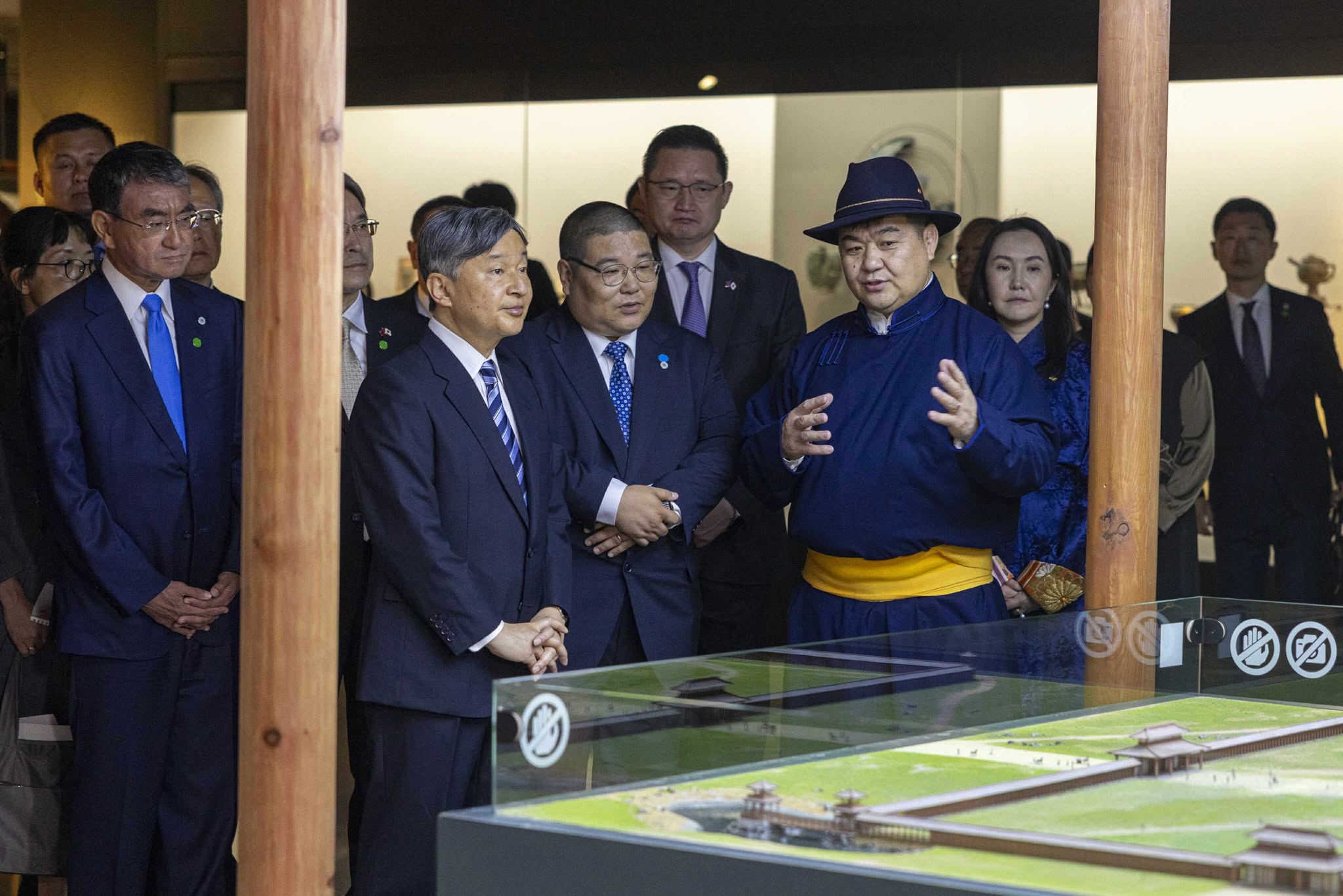 Монгол Улсын Ерөнхийлөгч Ухнаагийн Хүрэлсүхийн урилгаар төрийн айлчлал хийж буй Япон Улсын Цог Жавхлант Эзэн Хаан Нарүхито 2025 оны 07 дугаар сарын 07-ны өдөр Чингис хаан Үндэсний музейд зочиллоо.