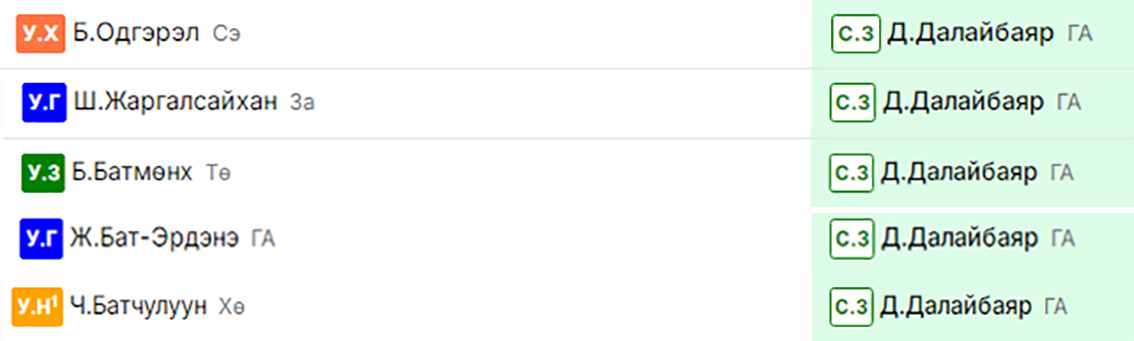 Ийм замаар зургаагийн даваанд гарч ирсэн Д.Далайбаярын давааг цэргийн заан Ө.Батсуурь гүйцээж, амлан давсан юм.