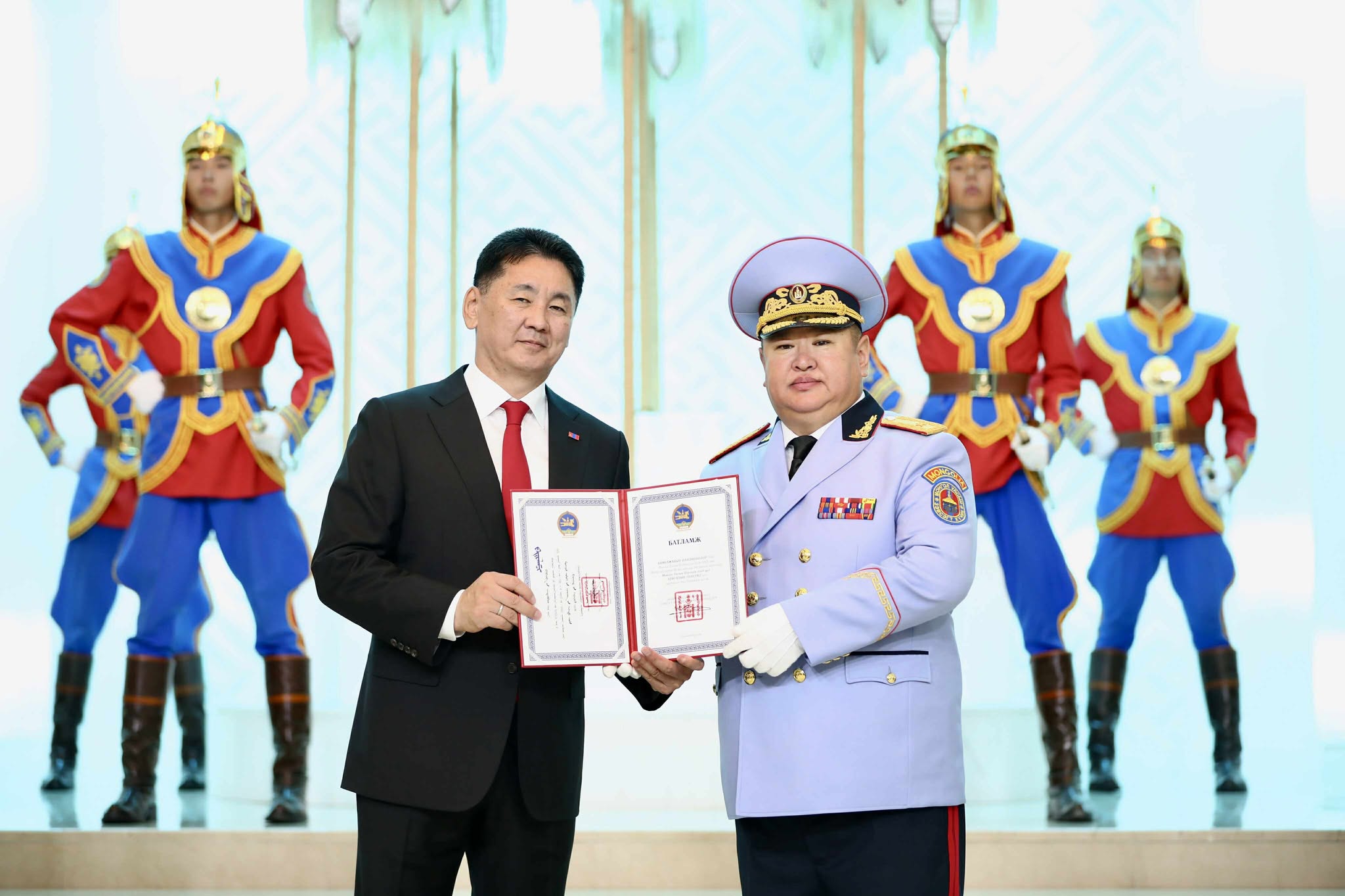 Монгол Улсын Ерөнхийлөгчийн 102 дугаар зарлигаар өчигдөр /2025.07.10/ Хууль зүй, дотоод хэргийн салбарт “Бригадын генерал ”цолтон хоёр төрлөө.