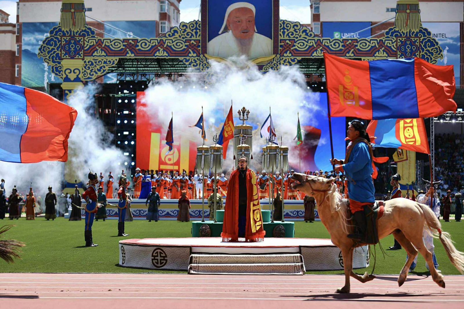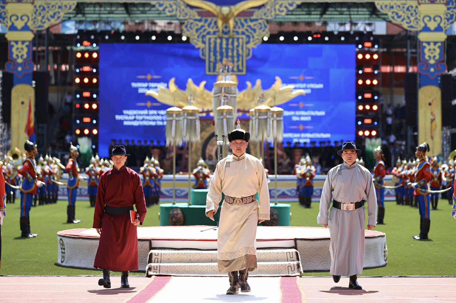 Монгол хэмээх нэгэн нэрийг ертөнцийн чихнээ дуурьсгадаг дэлхийд хосгүй монгол наадам төрт ёсны их шүтээн есөн хөлт цагаан тугаа мөнх хөх тэнгэртээ мандуулж, уяхан замбуу тивийн наранг уртын дуугаараа мялааж, хөрст алтан дэлхийг хуурын эгшгээрээ хөгжөөж, хүн ард, уул усаа баясган, өнгө төгөлдөр, цог жавхлан төгс ийнхүү эхэлж байна.