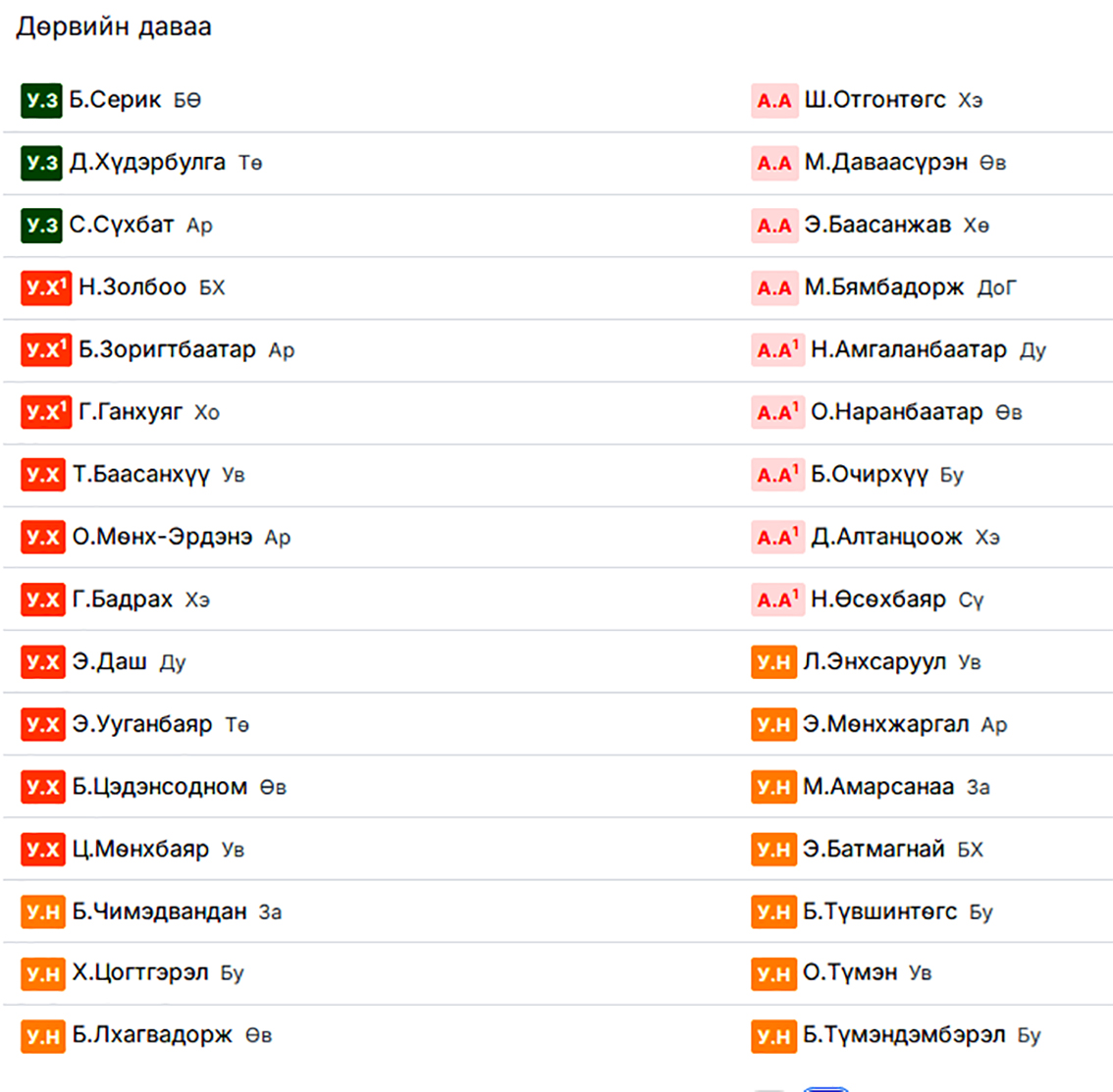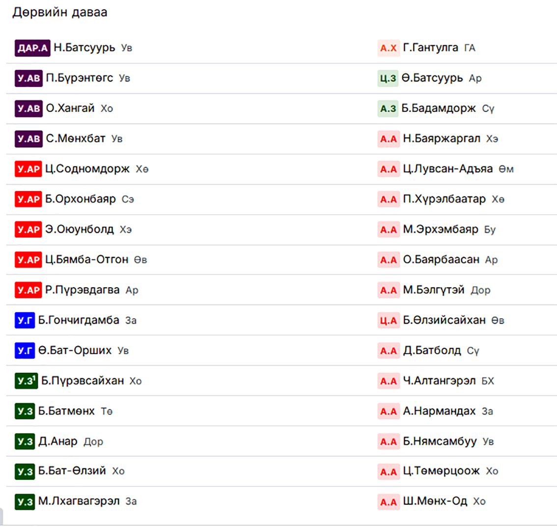 Дөрвийн давааны энэхүү нугалаанд улсын аварга П.Бүрэнтөгстэй хэдхэн хоногийн өмнө аймгийн арслан цол хүртсэн ч наадамд цэргийн заан цолтойгоо барилдаж буй Архангайн Ө.Батсуурь таараад байна. Өнгөрсөн жил хоёр бөх наадмаар таарахад улсын аварга давж байсан. Тэгвэл энэ удаад ч удаж төдөлгүй аварга давлаа.