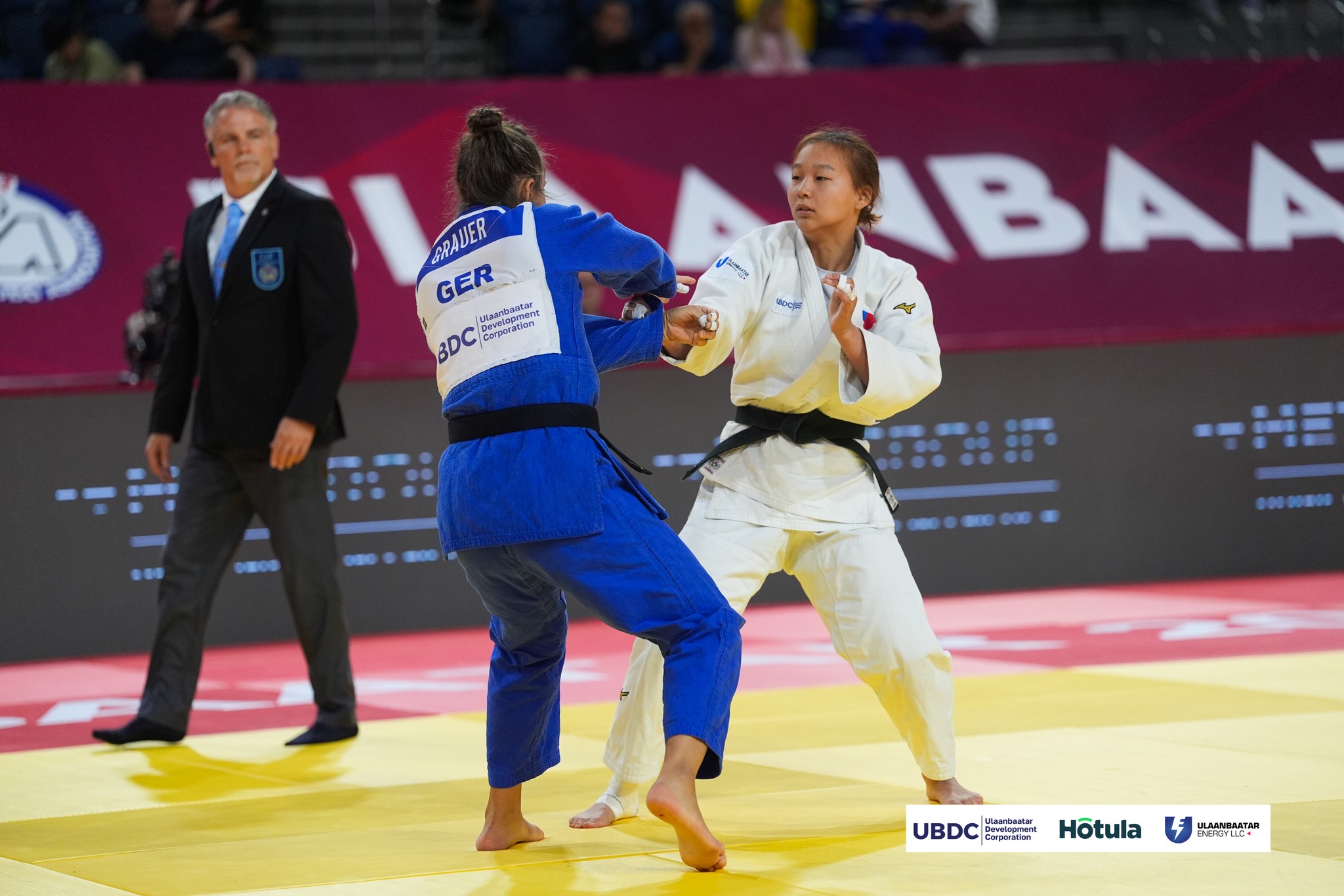 Б.Ням-Эрдэнийн хувьд эхний барилдаанд Олон улсын жүдо бөхийн холбооны нэр дээрээс барилдаж буй Оросын Тамара Лишченког нэмэлт цагт таллаж хөмрөн, вазари үнэлгээ авч ялсан.