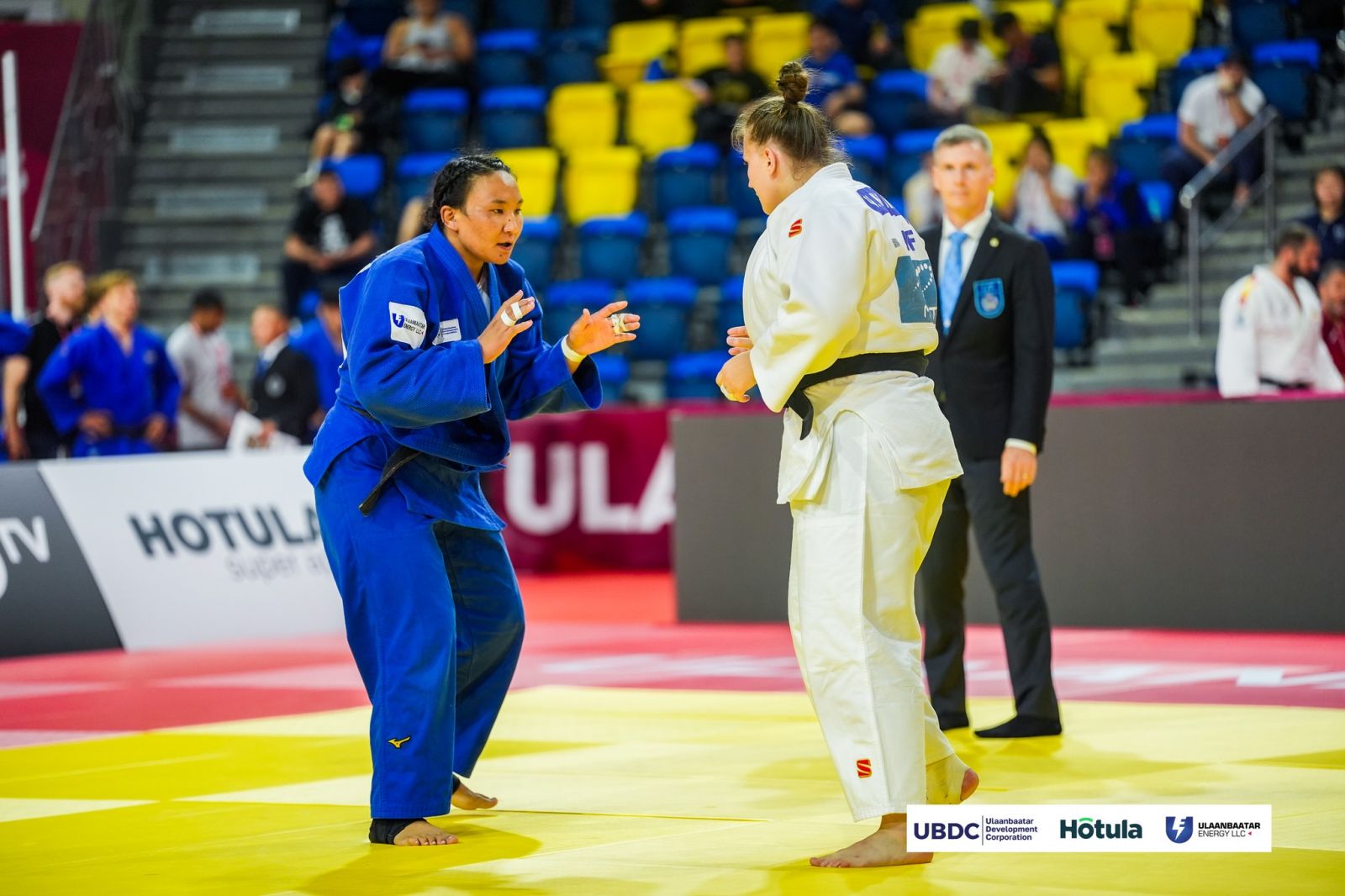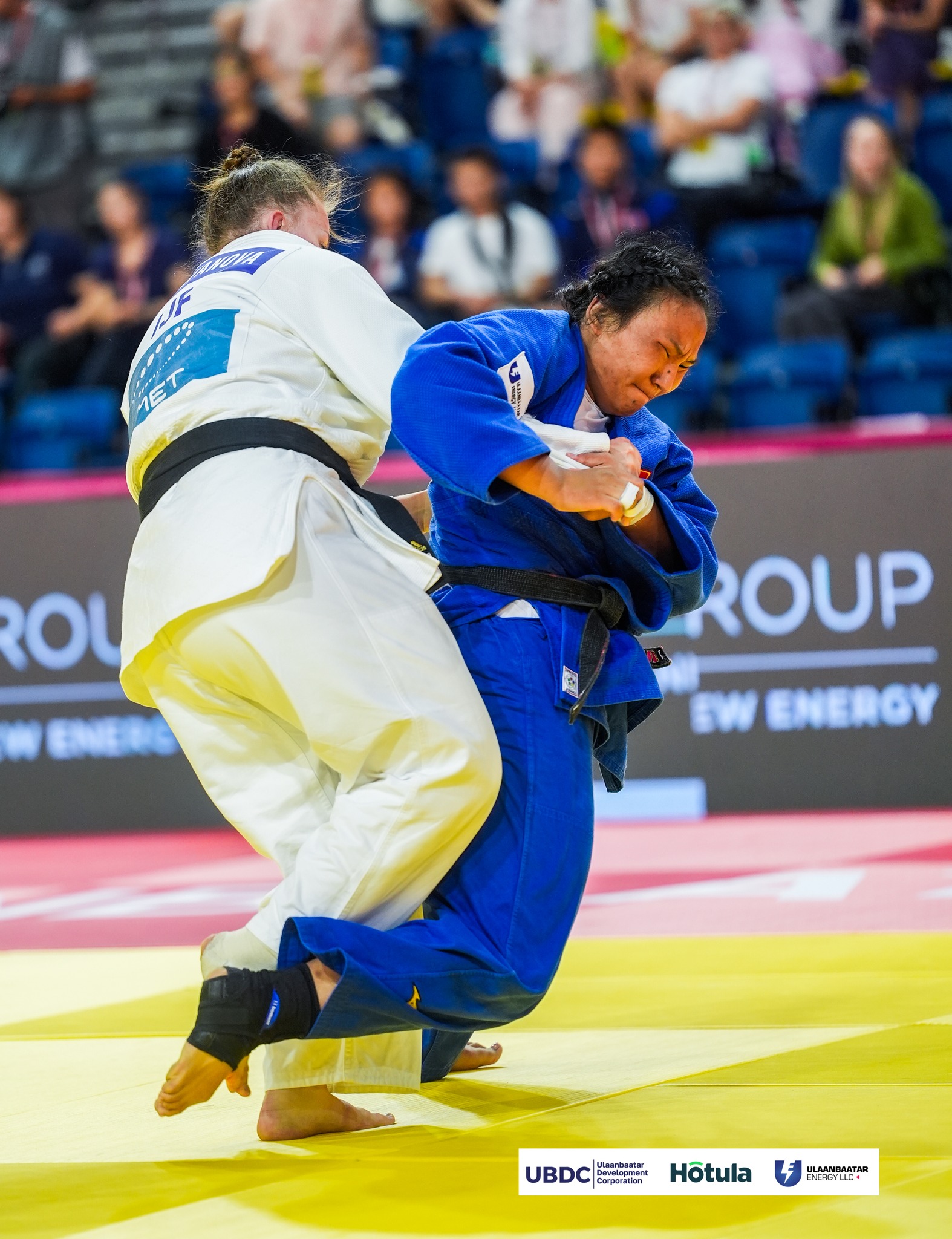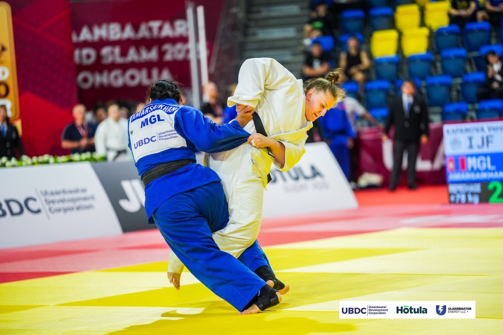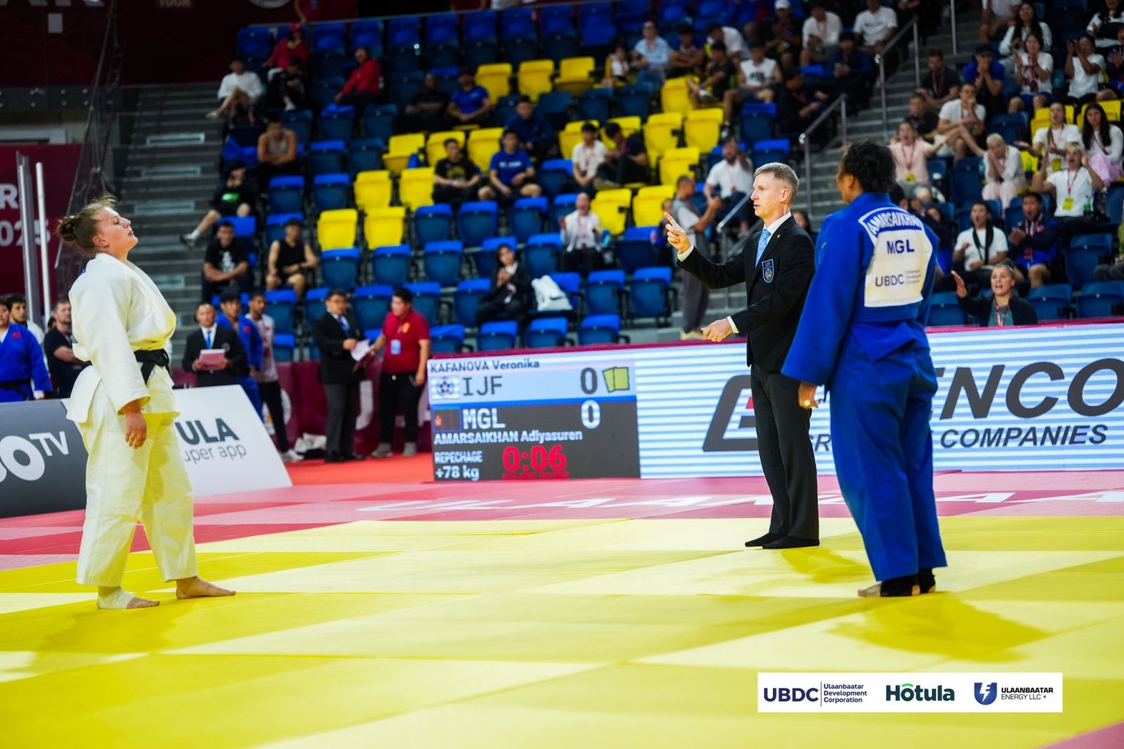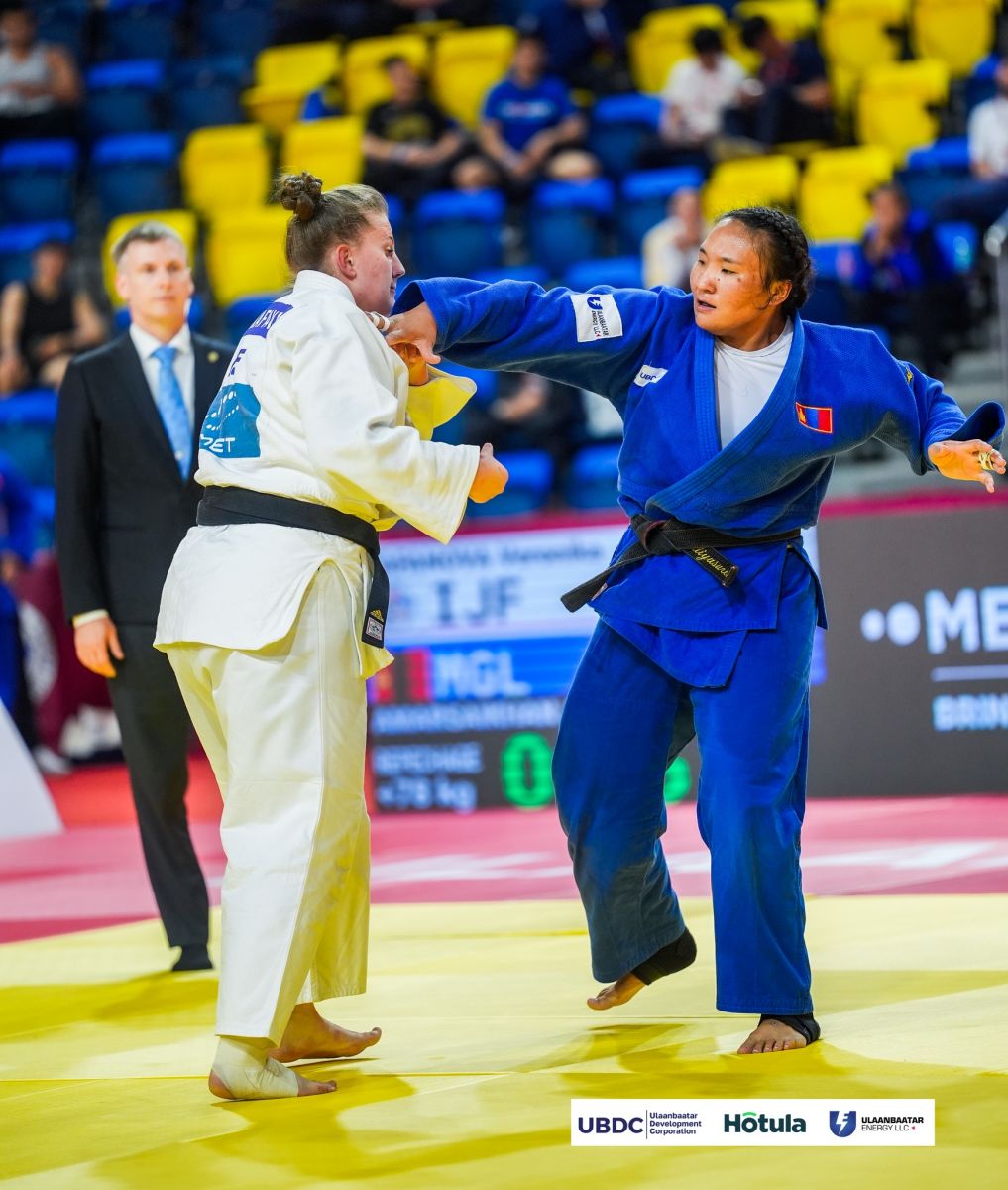 Тэрбээр дагах барилдаанд IJF-ийн нэр дээр барилдаж буй орос бөх Вероника Кафановаг гурван торгуулиар ялсан юм.