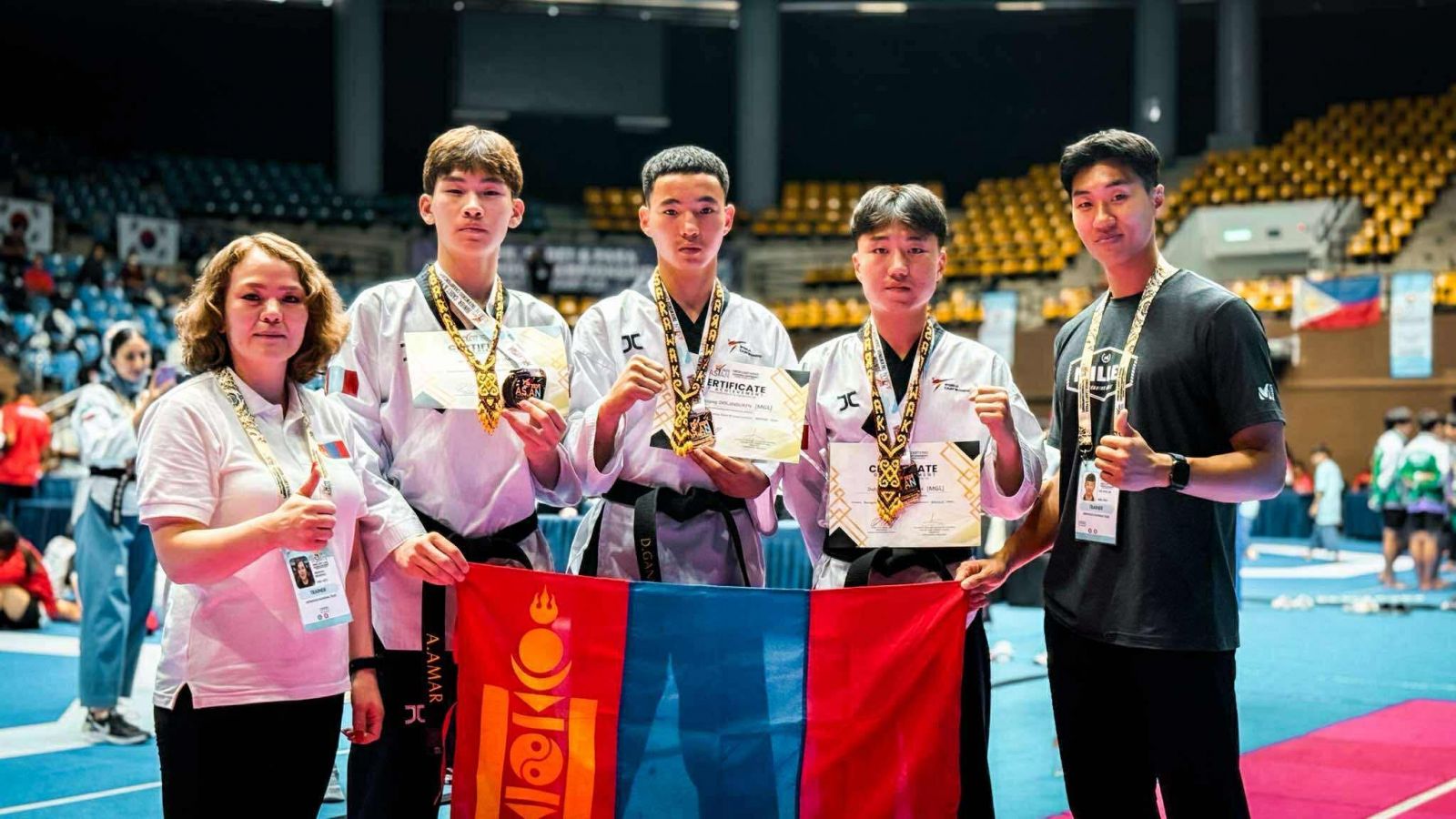 Энэхүү тэмцээнд амжилттай оролцоход үнэтэй хувь нэмрээ оруулж пүмсэ төрлийн мэргэжлийн дасгалжуулагч багшийг Монгол улсдаа авч ирсэн Дэд ерөнхийлөгч П.Батхүү танаа, дэмжин ажилласан Монголын таеквондогийн холбооны удирдлагууд мөн дэмжигч байгууллагууддаа талархал илэрхийлье.