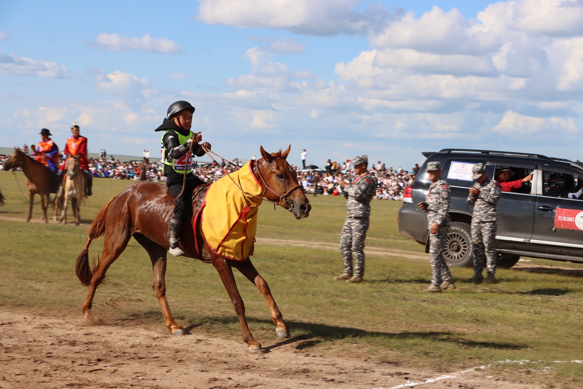 - Айргийн тавд Дундговь аймгийн Дэрэн сумын уяач Б.Бадрахжавхланы зээрд халзан соёолон тус тус хурдалж, уясан эзэн, унасан хүүхдээ баярлууллаа.