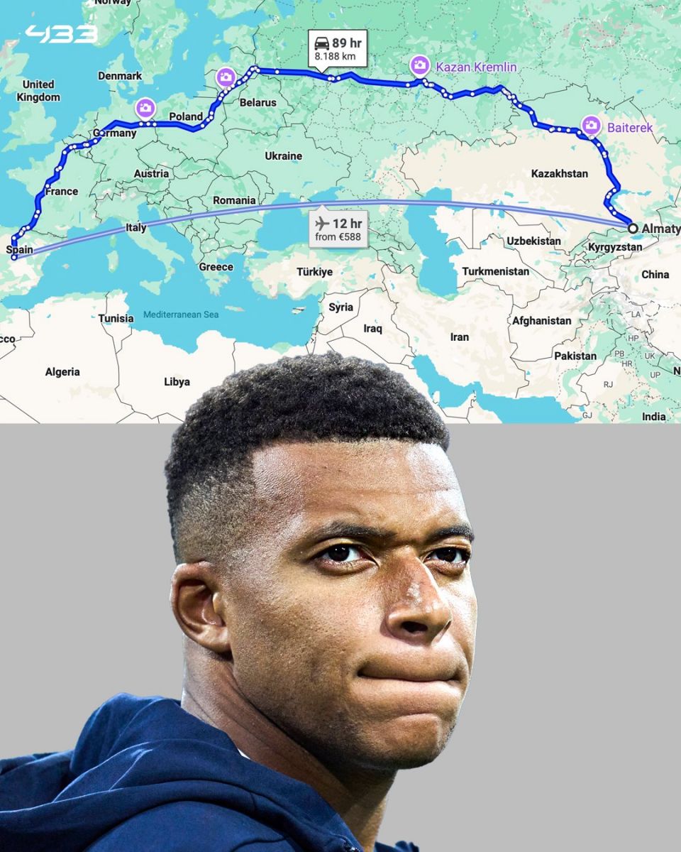 Мөн Мадридаас 12 цаг нисэж байж Алматыд хүрнэ. Деннис Бергкамп шиг онгоцоор нисэж чаддаггүй хөлбөмбөгч одоо цагт байгаа бол 89 цагийн турш буюу бараг 4 хоног машинаар явж очих ёстой болох нь.