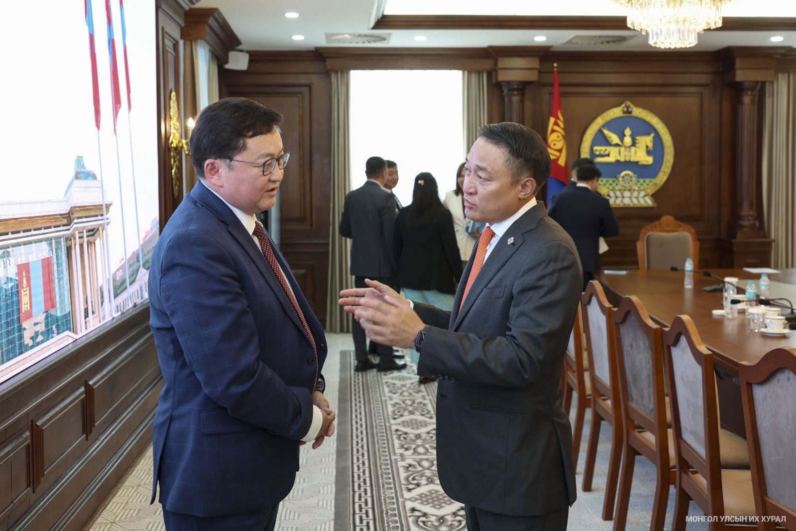 Монгол Улсын Их Хурлын дарга Д.Амарбаясгалан, Монгол Улсын Их Хурлын гишүүн Х.Ганхуяг, П.Сайнзориг, А.Ариунзаяа, Р.Батболд, М.Энхцэцэг, Д.Энхтүвшин, Б.Мөнхсоёл, П.Ганзориг нар өнөөдөр (2025.09.01) Монголын Үндэсний Худалдаа, аж үйлдвэрийн танхимын Ерөнхийлөгчийн үүрэг гүйцэтгэгч Б.Лхагважав тэргүүтэй төлөөллийг хүлээн авч уулзлаа. Уулзалтаар Худалдаа, аж үйлдвэрийн танхимын тухай хуулийн шинэчилсэн найруулгын төсөл, Татварын багц хуулийн шинэчлэл зэрэг асуудлаар санал солилцлоо.