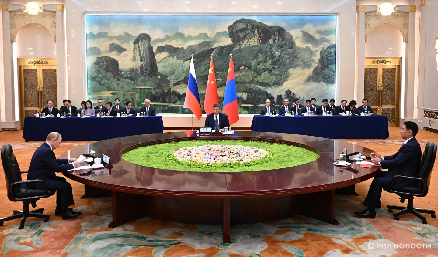 Бээжин хотноо Монгол Улсын ерөнхийлөгч Ухнаагийн Хүрэлсүх, БНХАУ-ын дарга Ши Жиньпин, ОХУ-ын ерөнхийлөгч Владимир Путин нарын гурван талт уулзалт эхэлжээ. Ардын төлөөлөгчдийн ордонд болж буй энэ удаагийн уулзалт нь долоо дахь удаагийнх юм.