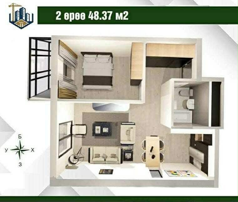 2өрөө~48.37м.кв