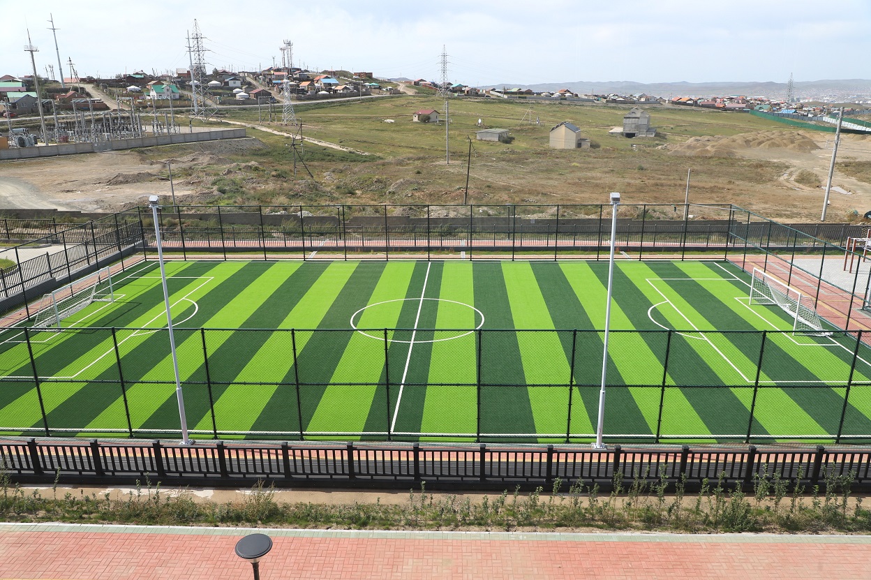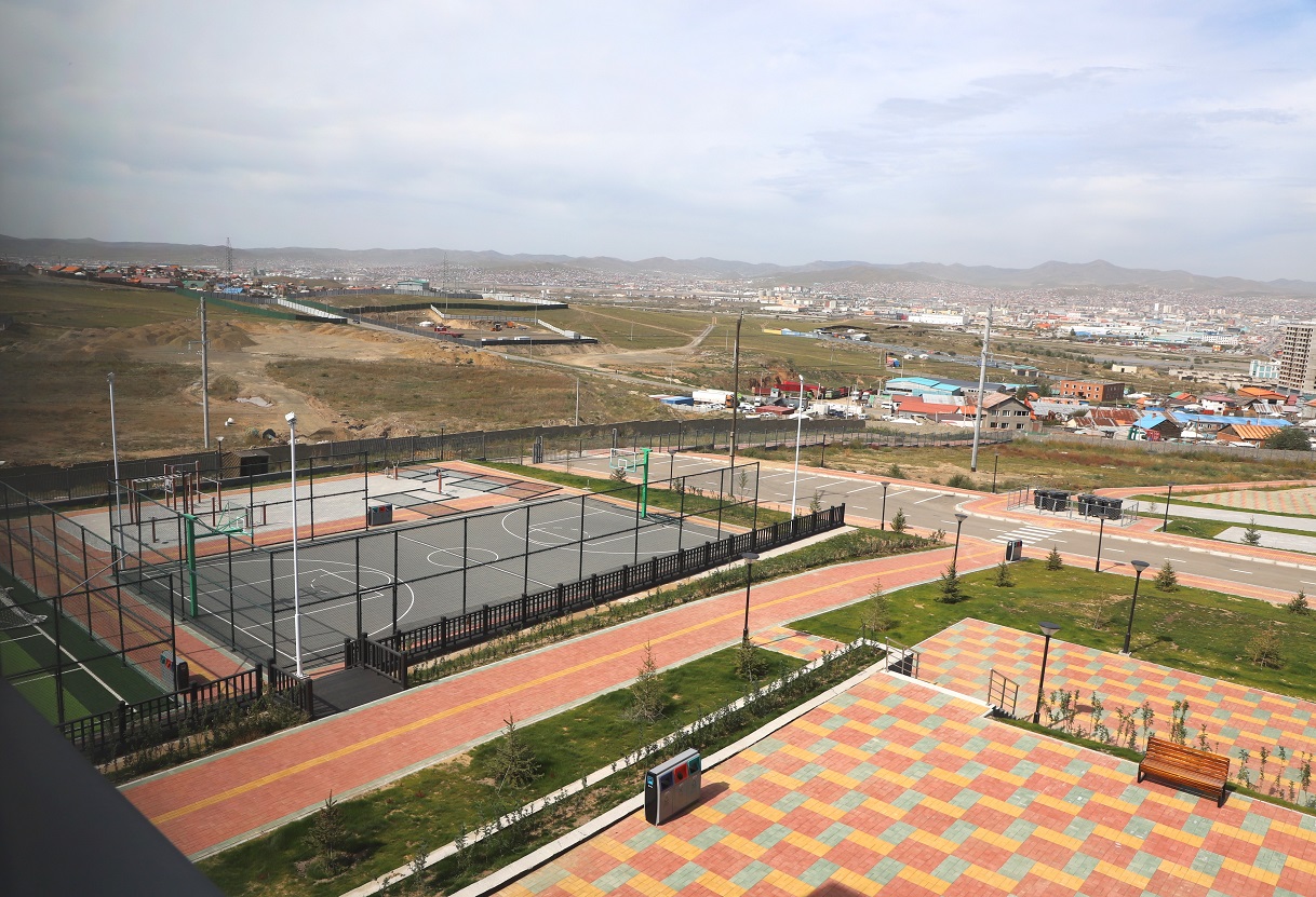 Мөн гадна тохижилтын хувьд хөлбөмбөгийн талбай, сагсан бөмбөгийн талбай, чийрэгжүүлэх тоног төхөөрөмж болон явган хүний зам талбай болон авто зогсоолыг төлөвлөн гүйцэтгэсэн.
