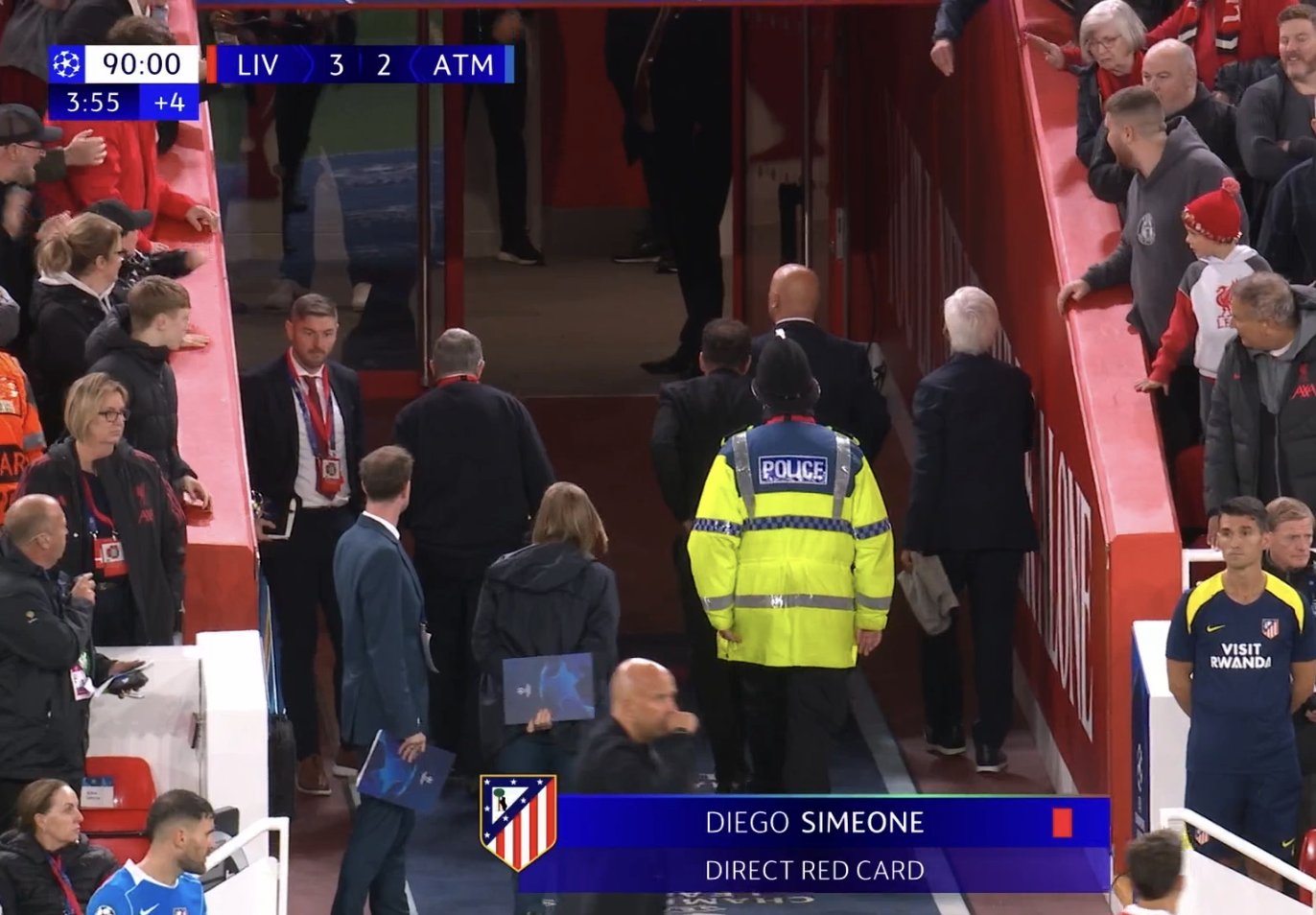 Зочин багийн дасгалжуулагч Диего Симеоне өрсөлдөгч багийнхаа фанаттай зөрчилдөж, хараасан үйлдлийнхээ төлөө улаан хуудас хүртжээ. Тоглолтын дараа аргентин дасгалжуулагч ийм тайлбар хэлсэн байна.