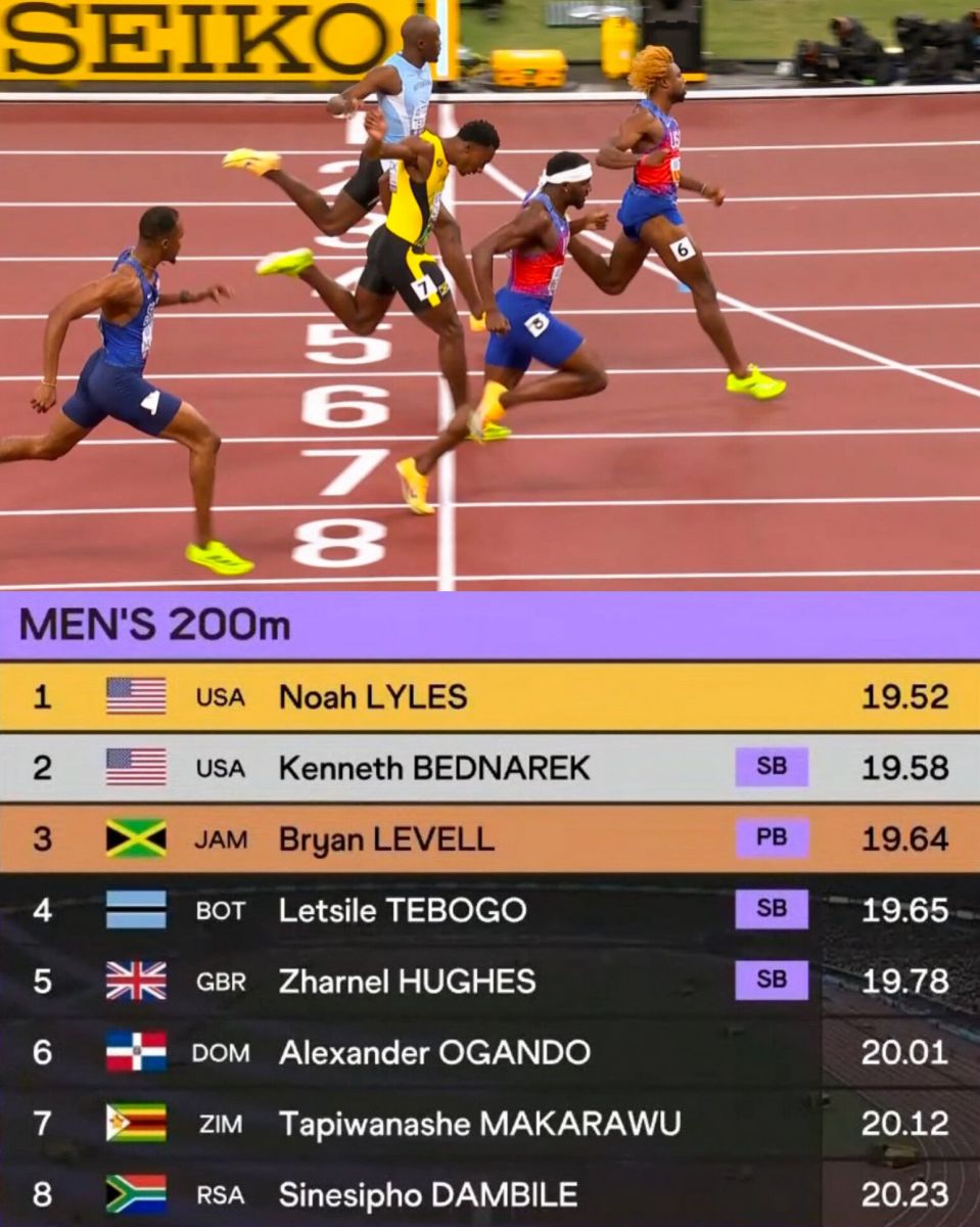 Хөнгөн атлетикийн ДАШТ-ий эрэгтэйчүүдийн 200 метрийн зайн гүйлтэд Ноа Лайлс түрүүлж, Дэлхийн аваргын дөрөв дэх алтан медалиа зүүлээ.