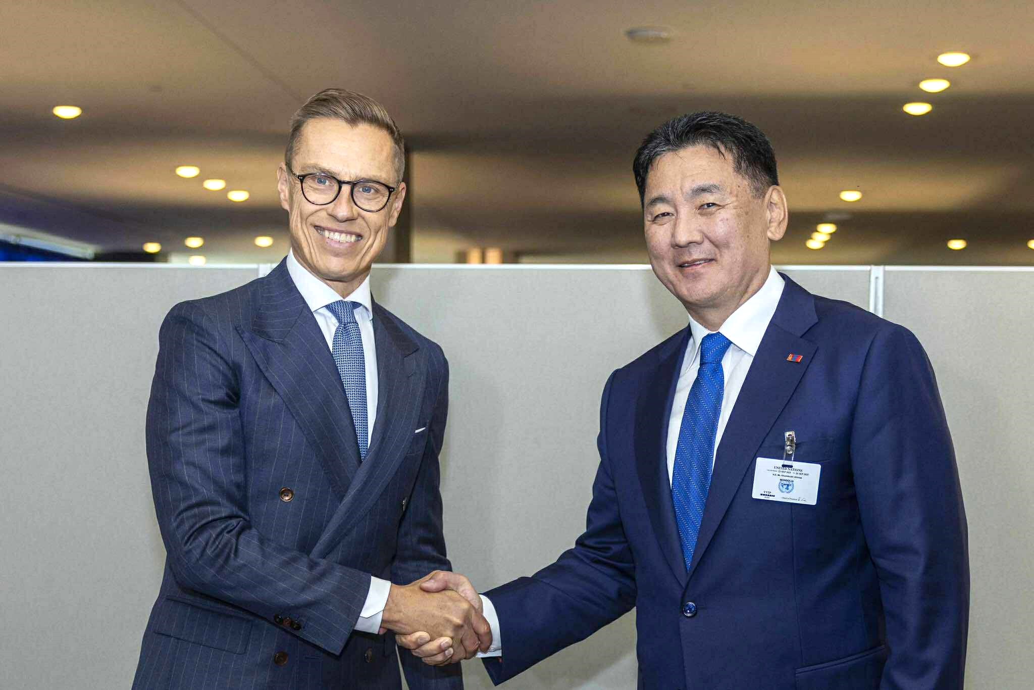 Монгол Улсын Ерөнхийлөгч Ухнаагийн Хүрэлсүх НҮБ-ын Ерөнхий Ассамблейн 80 дугаар чуулганд оролцох үеэрээ Бүгд Найрамдах Финланд Улсын Ерөнхийлөгч Александер Стубб-тай уулзав.