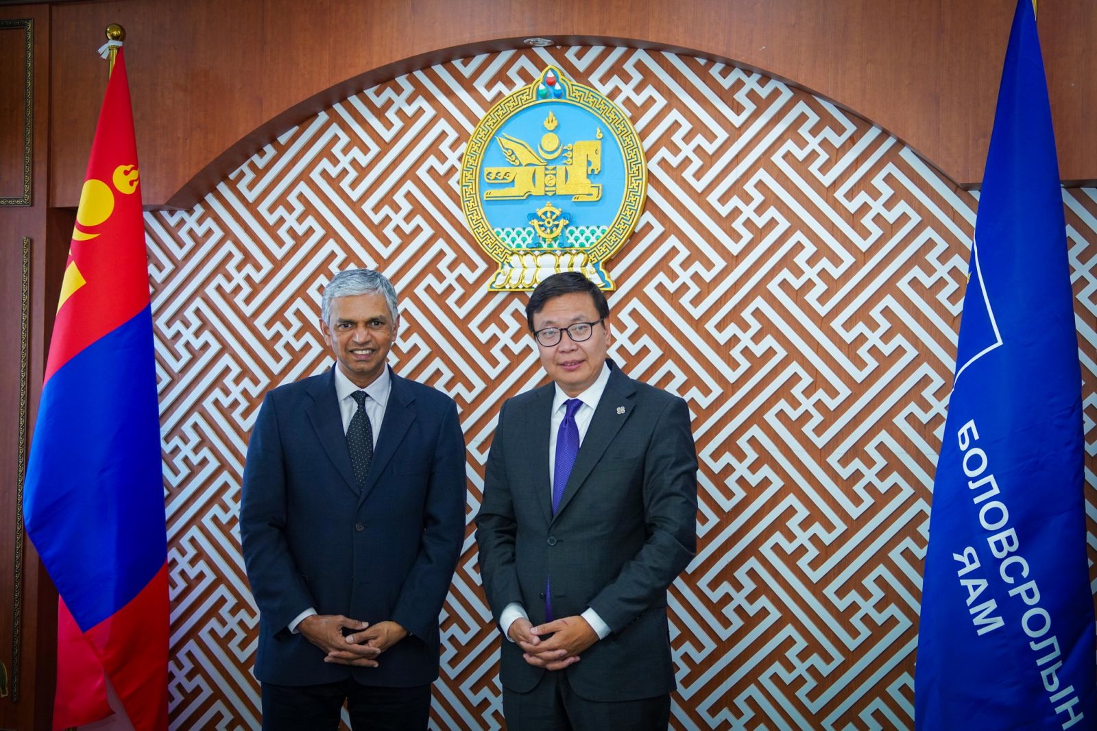 Боловсролын сайд П.Наранбаяр Бүгд Найрамдах Энэтхэг Улсын Гадаад хэргийн яамны Зүүн Ази хариуцсан Нарийн бичгийн дарга Периасами Кумаран, Бүгд Найрамдах Энэтхэг Улсаас Монгол Улсад суугаа Онц бөгөөд Бүрэн эрхт Элчин сайд Готсурвэ Атул Малхари тэргүүтэй төлөөлөгчдийг хүлээн авч уулзлаа.