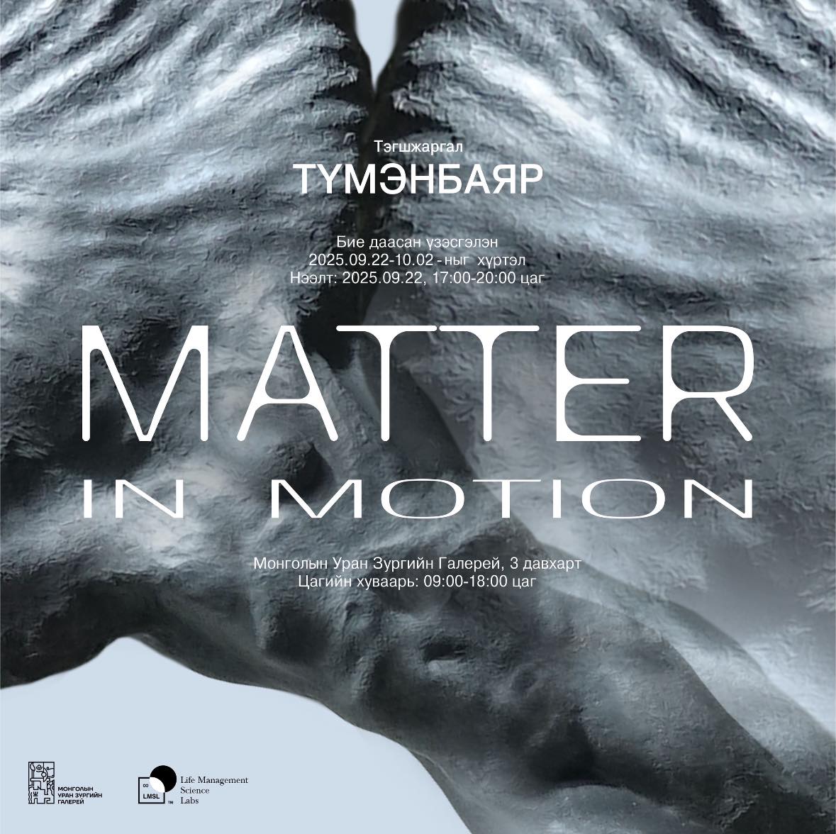 Уран зургийн галерейд уран барималч Т.Түмэнбаярын Matter In Motion үзэсгэлэн нээгдээд байна. Монголын шилдэг залуу уран барималчдын нэг 13 бүтээлээ урлаг сонирхогчдын өмнө дэлгэн тавилаа.