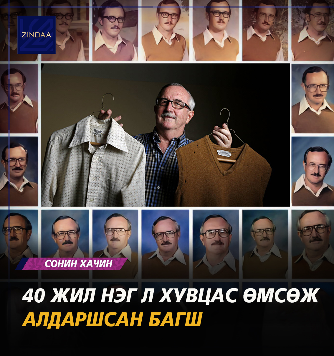 “Би хоёр жил дараалан нэг л янзаар хувцасласнаа мэдээд үнэндээ дургүй хүрсэн. Гэтэл эхнэр намайг дахиад энэ хувцасаа өмсөөд байхгүй юү гэж наргиагаар хэлсэн юм. Би тэр наргиаг нь өлгөж аваад, цаашид энэ янзаараа л зураг авахуулаад байя гэж болсон. Өөрчлөх тухай бодохоо ч больсон” хэмээн багш Ирби ярьжээ.
