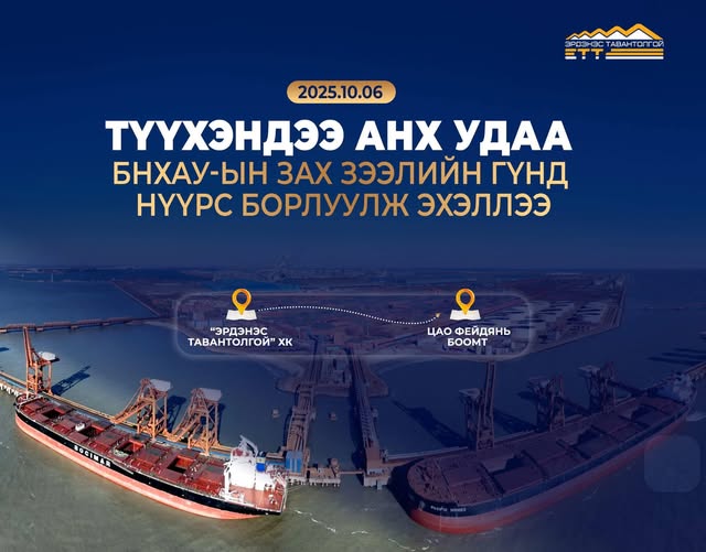 "Эрдэнэс Тавантолгой" ХК 2025 оны 10 дугаар сарын 6-ны өдөр Монголын Хөрөнгийн Биржээр дамжуулан 6,4 мянган тонн баяжуулсан коксжих нүүрсийг анх удаа БНХАУ-ын Цао Фейдянь боомт хүргэж өгөх нөхцөлөөр амжилттай арилжааллаа.